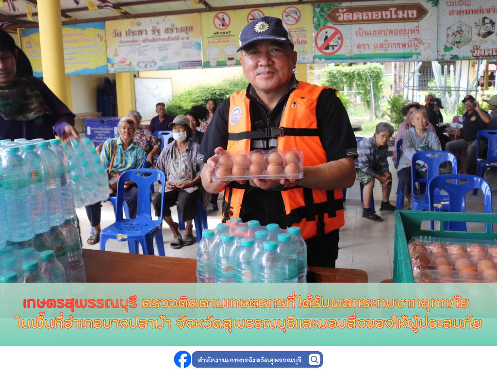 เกษตรสุพรรณบุรี ตรวจติดตามเกษตรกรที่ได้รับผลกระทบจากอุทกภัย ในพื้นที่อำเภอบางปลาม้า จังหวัดสุพรรณบุรีและมอบสิ่งของให้ผู้ประสบภัย