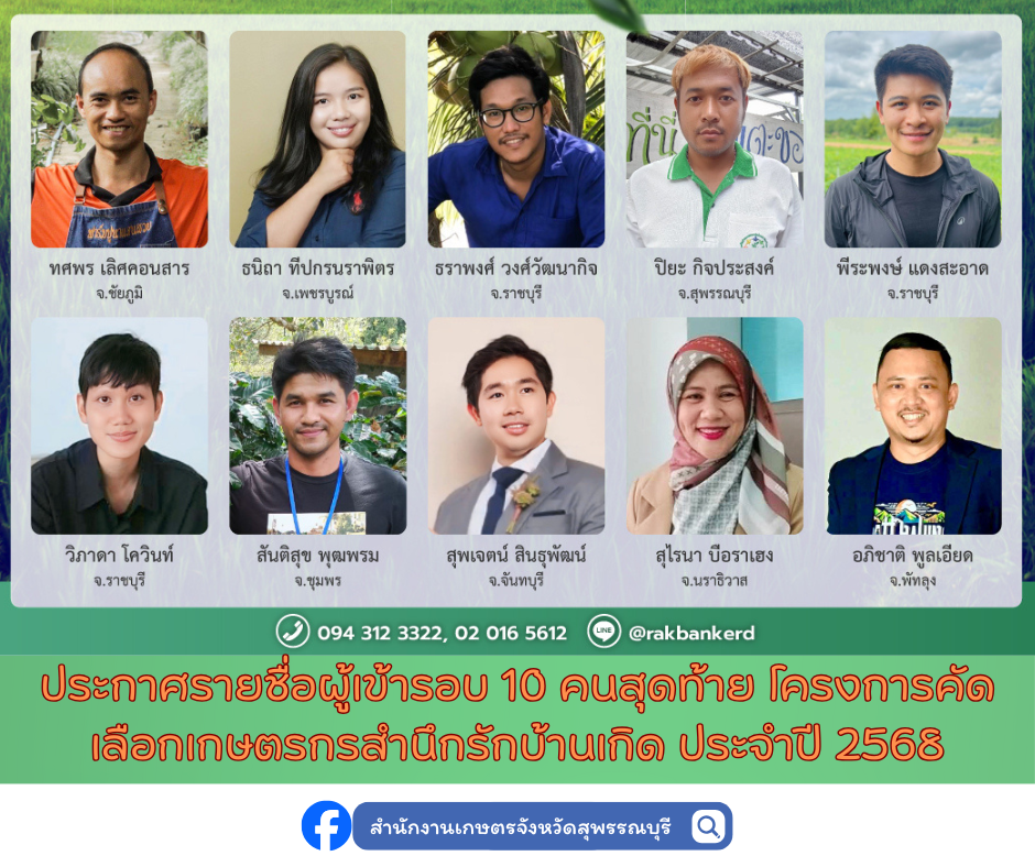 ข่าวประชาสัมพันธ์ประกาศรายชื่อผู้เข้ารอบ 10 คนสุดท้าย โครงการคัดเลือกเกษตรกรสำนึกรักบ้านเกิด ประจำปี 2568 ประกาศรายชื่อผู้เข้า