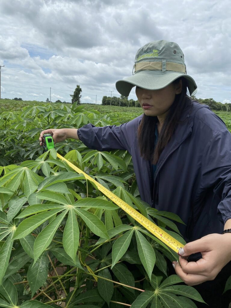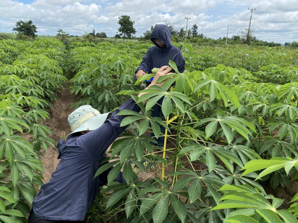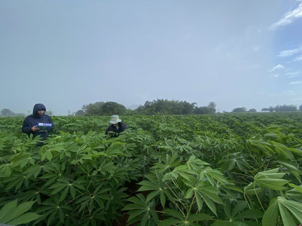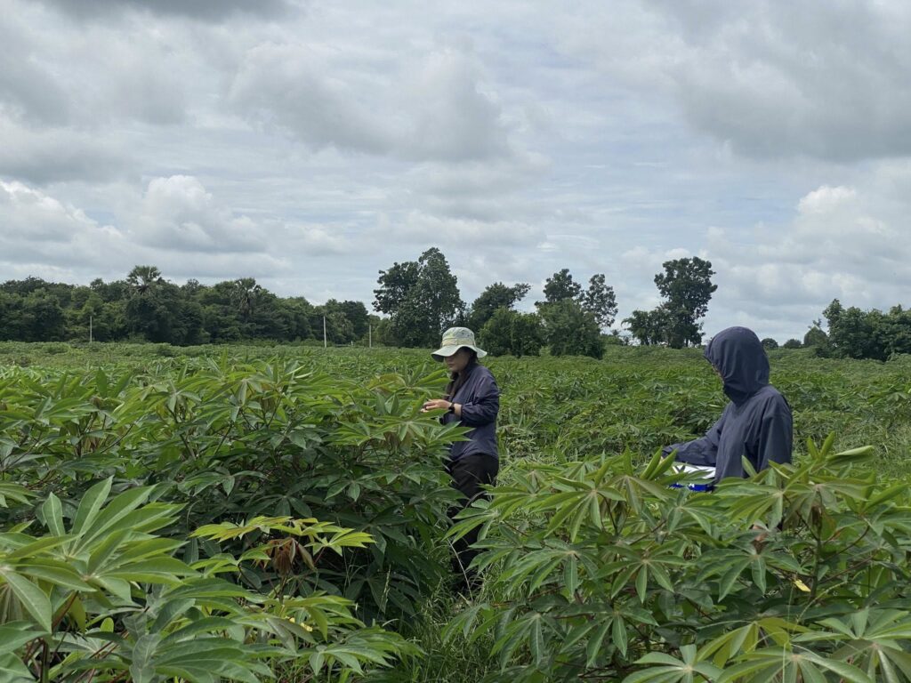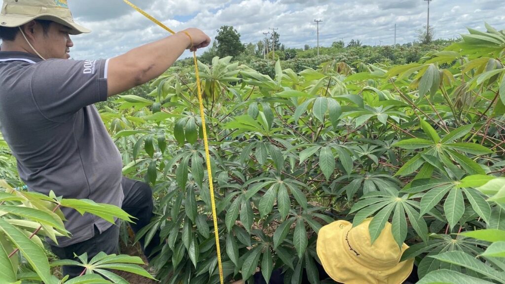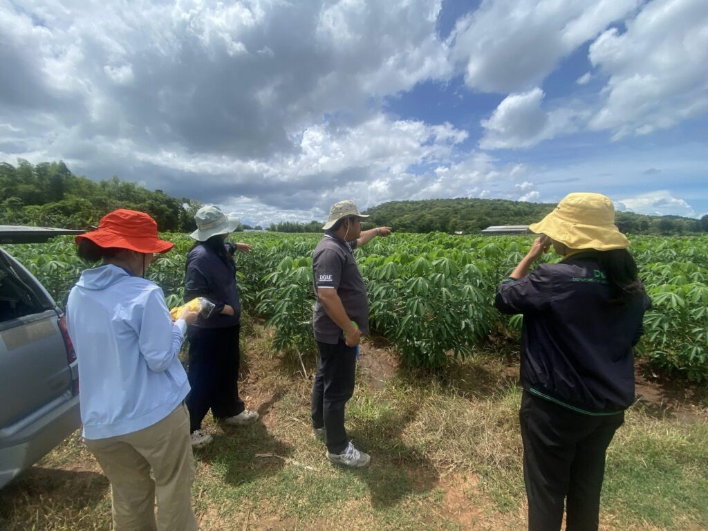 วันที่ 9 กันยายน 2568 เจ้าหน้าที่กลุ่มส่งเสริมและพัฒนาการผลิต ร่วมกับเจ้าหน้าที่กลุ่มอารักขาพืช สำนักงานเกษตรจังหวัดสุพรรณบุรี และเจ้าหน้าที่สำนักงานเกษตรอำเภอด่านช้าง จังหวัดสุพรรณบุรี ดำเนินการติดตามและเก็บข้อมูลแปลงทดสอบและถ่ายทอดเทคโนโลยีเพื่อเพิ่มผลิตภาพการผลิตมันสำปะหลัง โครงการทดสอบและถ่ายทอดเทคโนโลยีเพื่อเพิ่มผลิตภาพการผลิตสินค้าเกษตร ครั้งที่ 2 (หลังปลูกมันสำปะหลัง 3 เดือน) จำนวน 2 แปลง ในพื้นที่ตำบลหนองมะค่าโมง อำเภอด่านช้าง จังหวัดสุพรรณบุรี