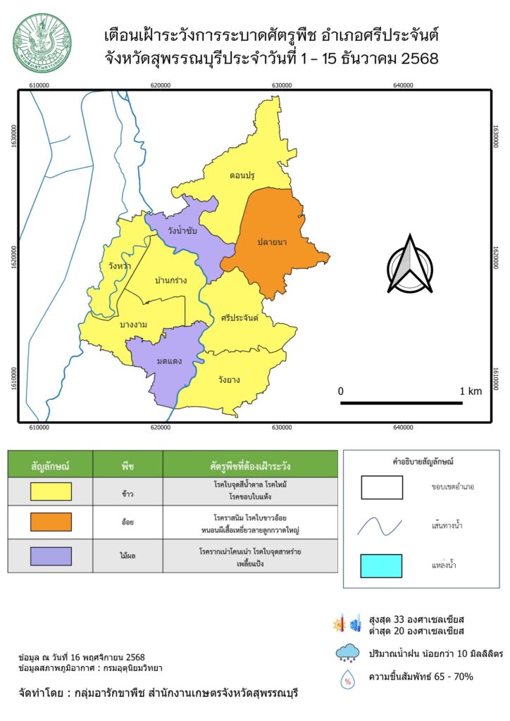 เตือนเฝ้าระวังการระบาดศัตรูพืช อำเภอศรีประจันต์ จังหวัดสุพรรณบุรี ประจำวันที่ 1-15 ธันวาคม 2568By admin_doae / 1 ธันวาคม 2025