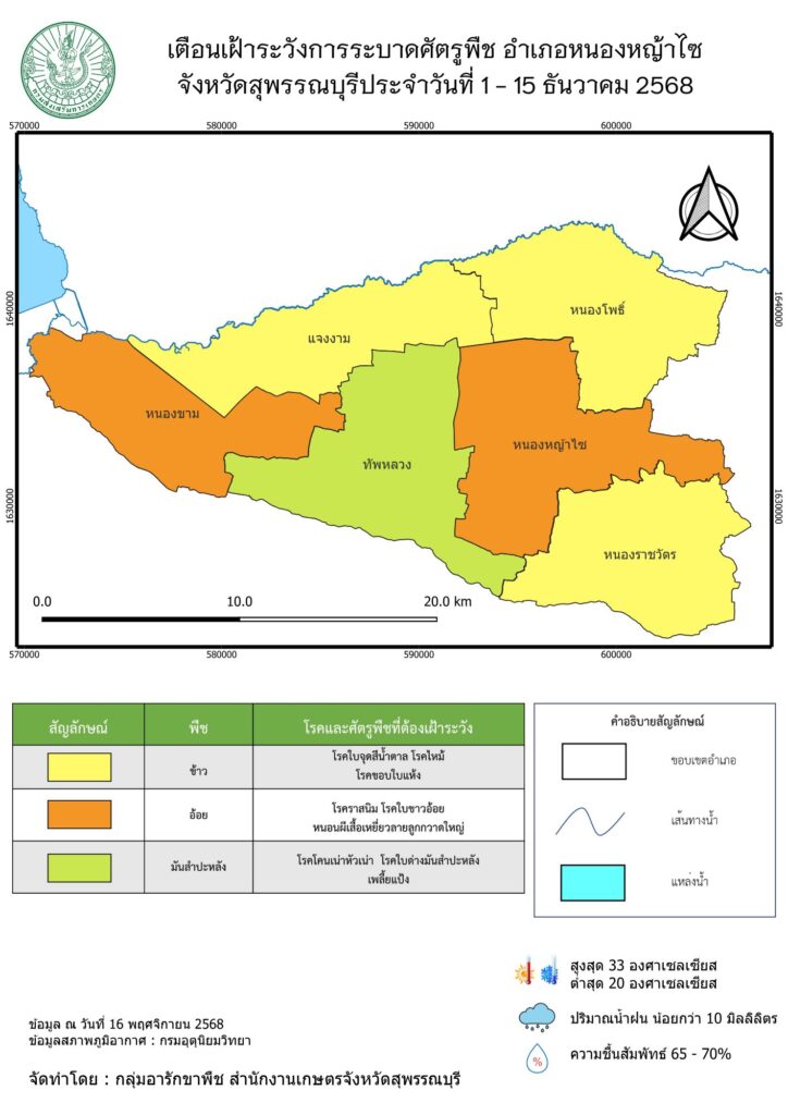 เตือนเฝ้าระวังการระบาดศัตรูพืช อำเภอหนองหญ้าไซ จังหวัดสุพรรณบุรี ประจำวันที่ 1-15 ธันวาคม 2568By admin_doae / 1 ธันวาคม 2025