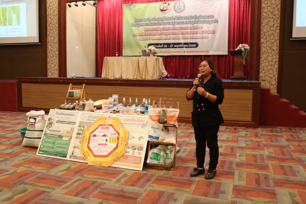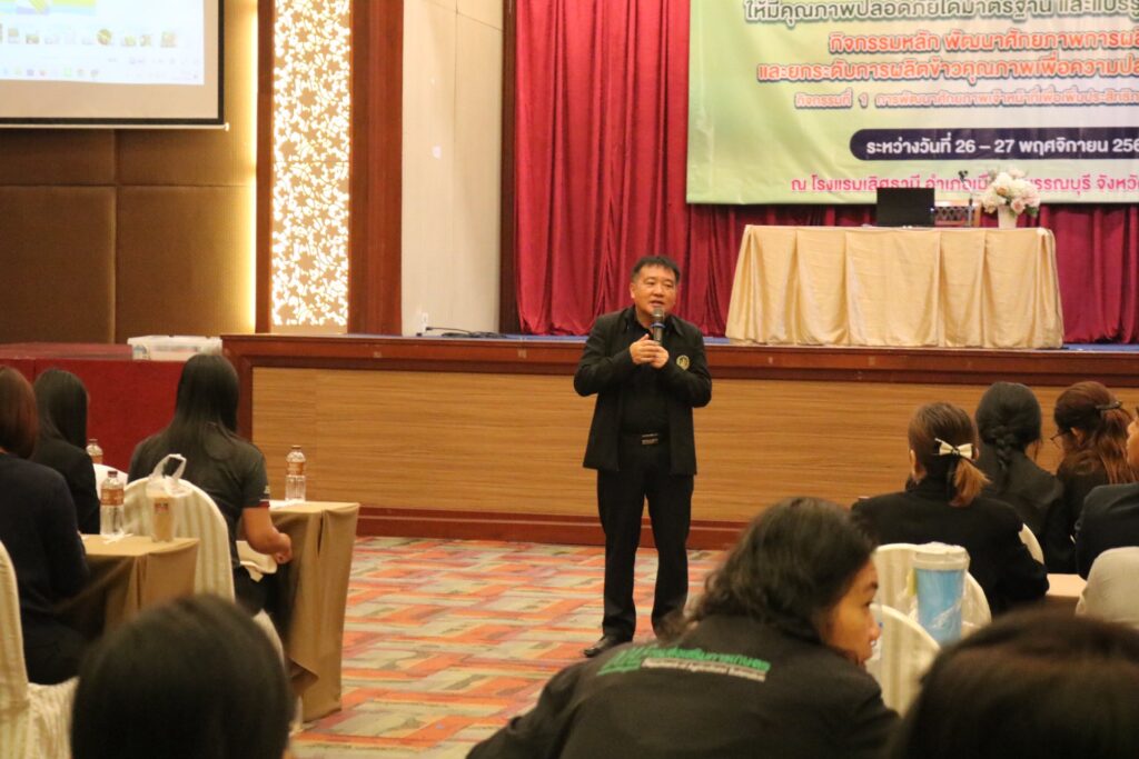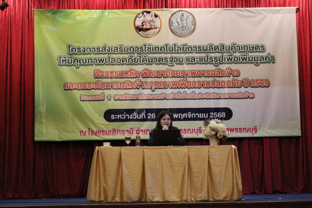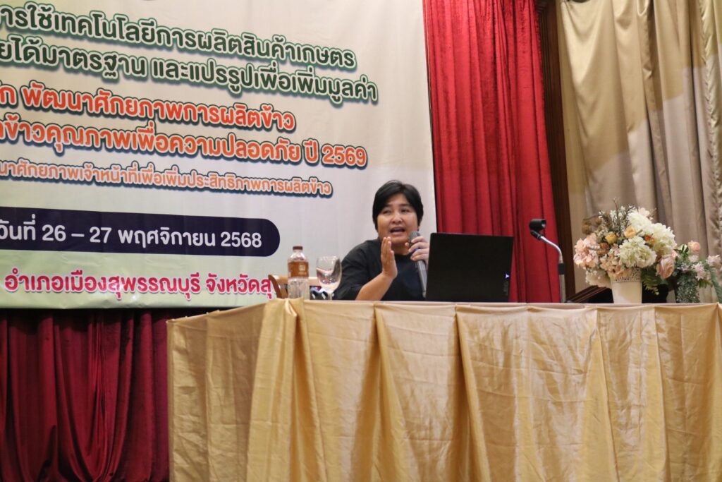 กิจกรรมโครงการส่งเสริมการใช้เทคโนโลยีการผลิตสินค้าเกษตรให้มีคุณภาพ ปลอดภัยได้มาตรฐาน และแปรรูปเพื่อเพิ่มมูลค่า กิจกรรมหลักพัฒนาศักยภาพการผลิตข้าวและยกระดับการผลิตข้าวคุณภาพเพื่อความปลอดภัย ปี 2569 กิจกรรมที่ 1 การพัฒนาศักยภาพเจ้าหน้าที่เพื่อเพิ่มประสิทธิภาพการผลิตข้าว ระหว่างวันที่ 26 – 27 พฤศจิกายน 2568 ณ โรงแรมเลิศธานี อำเภอเมืองสุพรรณบุรี จังหวัดสุพรรณบุรี โดยมีนายวสันต์ จี้ปูคำ เกษตรจังหวัดสุพรรณบุรี เป็นประธาน ฯ เปิดกิจกรรมการอบรมดังกล่าว ซึ่งมีการบรรยายความรู้ในหัวข้อ ดังนี้