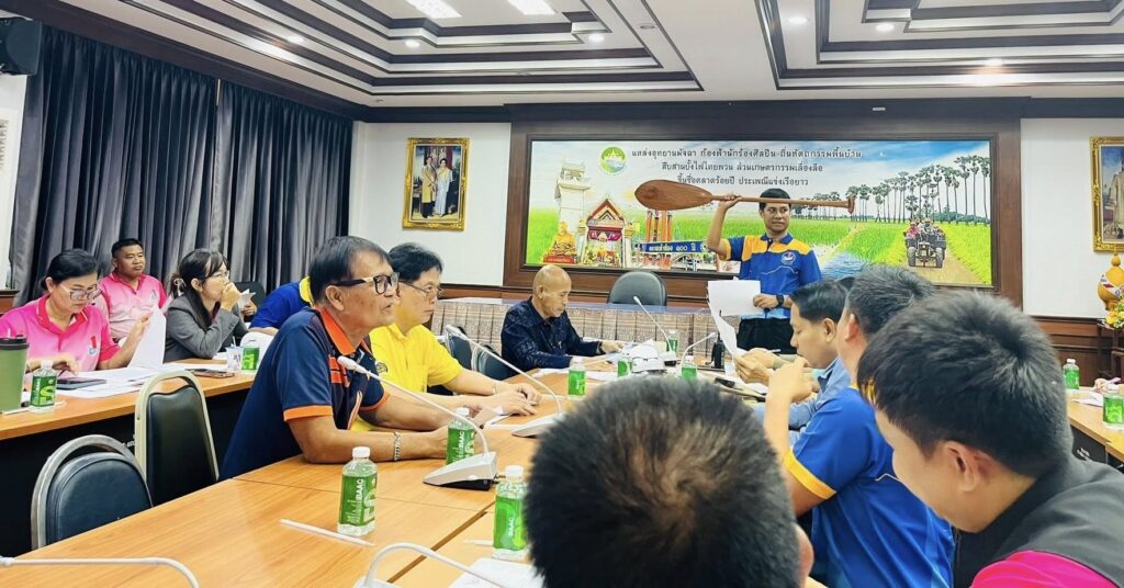 นายฐิติภัทร มีบุบผา เกษตรอำเภอบางปลาม้า ประชุมเตรียมความพร้อม การจัดงานแข่งขันเรือยาวประเพณีชิงถ้วยพระราชทาน อำเภอบางปลาม้า ครั้งที่ 19 ประจำปี 2568