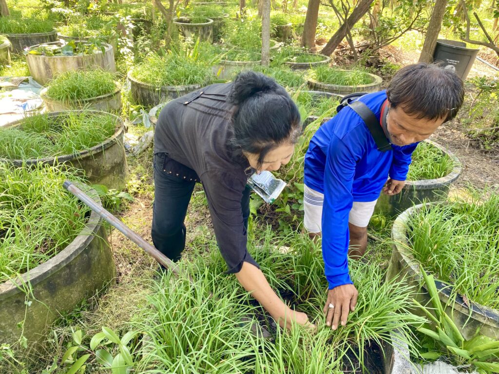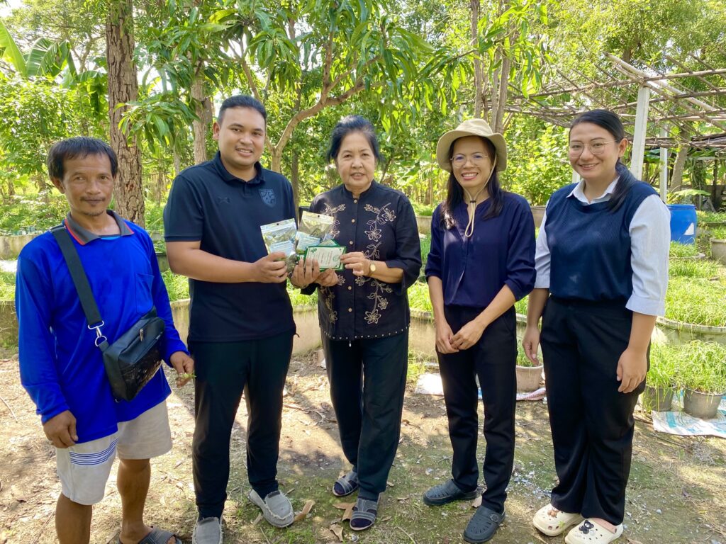 นายยศธร เพ็ชรทอง นักวิชาการส่งเสริมการเกษตรปฏิบัติการ นางสาวเบญจมาศ สามทอง นักวิชาการส่งเสริมการเกษตรปฏิบัติการ และนางสาวธัญญธร หมวดผา นักวิชาการส่งเสริมการเกษตร เจ้าหน้าที่สำนักงานเกษตรอำเภอบางปลาม้า พร้อมด้วย นายวิราช ออนา Smart Farmer ตำบลบางปลาม้า เยี่ยมเยียน และมอบสารชีวภัณฑ์เชื้อราไตรโคเดอร์ม่า และสาร พ.ด. 2 ให้แก่ คุณสุพัตรา มวลเสียงใส เกษตรกรผู้ปลูกกุยช่าย หมู่ที่ 3 ตำบลบางปลาม้า![]()