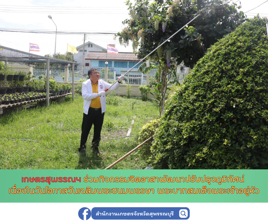 ข่าวประชาสัมพันธ์เกษตรสุพรรณบุรี ร่วมกิจกรรมจิตอาสาพัฒนาปรับปรุงภูมิทัศน์ เนื่องในวันโอกาสวันเฉลิมพระชนมพรรษา พระบาทสมเด็จพระเจ้าอยู่หัว วันที่ 30 กรกฎาคม 25