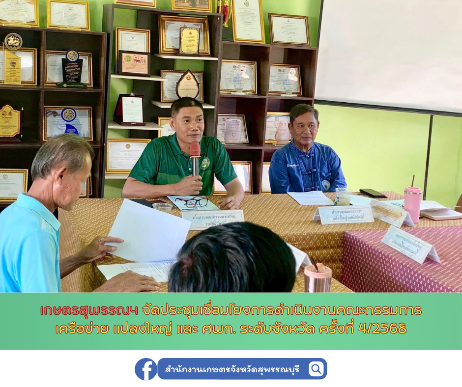 ข่าวประชาสัมพันธ์เกษตรสุพรรณฯ จัดประชุมเชื่อมโยงการดำเนินงานคณะกรรมการเครือข่าย แปลงใหญ่ และ ศพก. ระดับจังหวัด ครั้งที่ 4/2568 วันที่ 5 สิงหาคม 256 […]