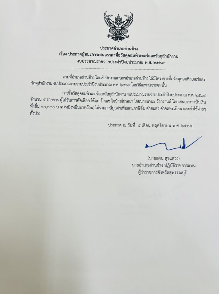 ประกาศผู้ชนะการเสนอราคา ซื้อวัสดุคอมพิวเตอร์และวัสดุสำนักงาน งบประมาณรายจ่ายประจำปีงบประมาณ พ.ศ. ๒๕๖๙By danchang / 5 พฤศจิกายน 2025