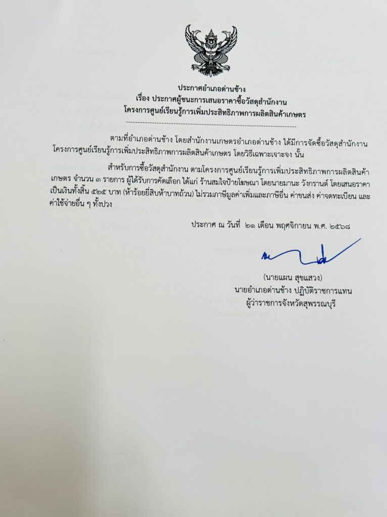 ประกาศผู้ชนะการเสนอราคาซื้อวัสดุสำนักงาน โครงการศูนย์เรียนรู้การเพิ่มประสิทธิภาพการผลิตสินค้าเกษตรBy danchang / 21 พฤศจิกายน 2025