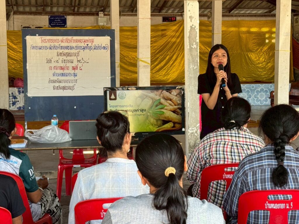 จัดอบรมถ่ายทอดความรู้ หลักสูตรเทคโนโลยีการเพิ่มผลผลิตมันสำปะหลังอย่างยั่งยืนและการบริหารจัดการแปลงภายใต้การเปลี่ยนแปลงของสภาพภูมิอากาศให้แก่เกษตรกร จำนวน 30 ราย ประกอบด้วยหัวข้อการอบรม ดังนี้
