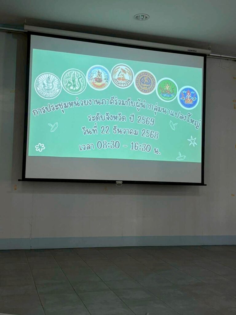 วันที่ 22 ธันวาคม 2568 นายมานพ ธัญญเจริญ นักวิชาการส่งเสริมการเกษตรชำนาญการ เข้าร่วมการประชุมของหน่วยงานภาคี ร่วมกับผู้นำกลุ่มนาแปลงใหญ่ ระดับจังหวัด เพื่อจัดทำแผนการดำเนินงานร่วมกัน ติดตามให้คำแนะนำในการบริหารจัดการกลุ่มพร้อมทั้งทราบผลความก้าวหน้าการดำเนินงานและปัญหาอุปสรรค ของหน่วยงานเครือข่ายและแลกเปลี่ยนความคิดเห็นในการดำเนินงาน หาพันธมิตรการผลิต และการตลาดข้าวในแต่ละชุมชน ภายใต้โครงการระบบส่งเสริมเกษตรแบบแปลงใหญ่ ปี 2569 ณ อาคารอเนกประสงค์ สถาบันวิทยาศาสตร์ข้าวแห่งชาติ จังหวัดสุพรรณบุรี