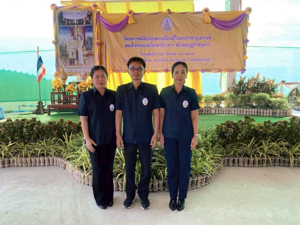 วันที่ 25 ธันวาคม 2568 นางสาววราพร หลวงปลอด เกษตรอำเภอเดิมบางนางบวช พร้อมด้วยนายมานพ ธัญญเจริญ และนางสาวพัชรี ศรีโมรา นักวิชาการส่งเสริมการเกษตรชำนาญการ เข้าร่วมงานโครงการคลินิกเกษตรเคลื่อนที่ในพระราชานุเคราะห์ สมเด็จพระบรมโอรสาธิราช ฯ สยามมกุฎราชกุมาร ณ วัดทุ่งแฝก ตำบลวังลึก อำเภอสามชุก จังหวัดสุพรรณบุรี โดยมีนายณัฐพงษ์ สงวนจิตร ผู้ว่าราชการจังหวัดสุพรรณบุรี ประธานในพิธีเปิดงาน โดยมีวัตถุประสงค์เพื่อสนองพระราชดำริและเฉลิมพระเกียรติ เนื่องในโอกาสวันเฉลิมพระชนมพรรษา พระบาทสมเด็จพระเจ้าอยู่หัว 28 กรกฎาคม 2568 เพื่อให้เกษตรกรในพื้นที่ห่างไกลสามารถเข้าถึงการบริการทางการเกษตรและได้รับการแก้ไขปัญหาด้านการเกษตรอย่างครบวงจรในคราวเดียวกันและเพื่อบูรณาการความร่วมมือระหว่างหน่วยงานวิชาการ หน่วยงานส่งเสริมและศูนย์เรียนรู้การเพิ่มประสิทธิภาพการผลิตสินค้าเกษตร (ศพก.) ในการให้บริการและแก้ไขปัญหาทางการเกษตร