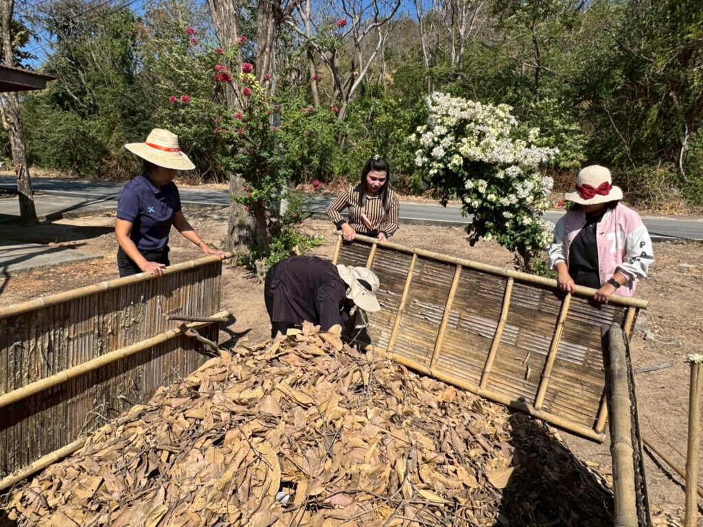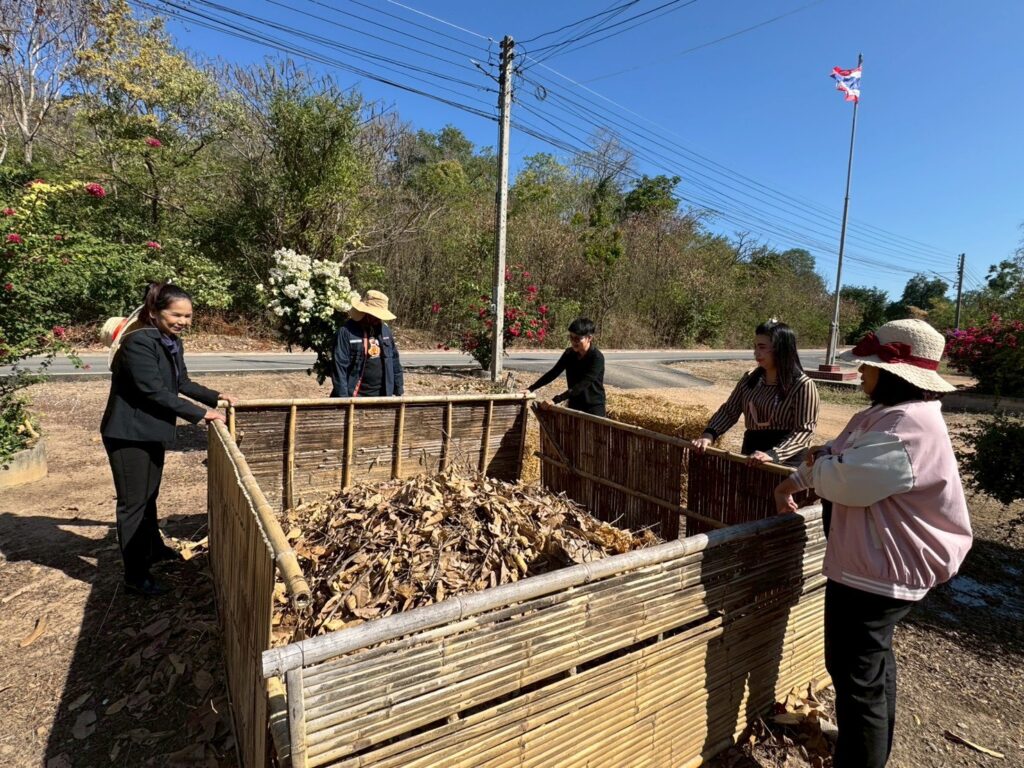 จัดทำแปลงปุ๋ยหมัก โดยใช้เศษใบไม้ เศษวัสดุทางการเกษตร เพื่อส่งเสริมการลดการเผาตลอดจนการจัดการเศษวัสดุการเกษตรอย่างยั่งยืน และเป็นจุดเรียนรู้ให้แก่เกษตรกรที่สนใจ