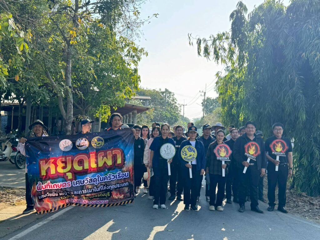 นางสาวขวัญฤทัย ไตรพรม นายอำเภอเดิมบางนางบวช พร้อมด้วยนางสาววราพร หลวงปลอด เกษตรอำเภอเดิมบางนางบวช และเจ้าหน้าที่สำนักงานเกษตรอำเภอเดิมบางนางบวช ร่วมจัดกิจกรรมรณรงค์หยุดเผาพื้นที่เกษตร เศษวัสดุในครัวเรือน เศษวัชพืช หญ้า และการเผาในที่โล่งทุกประเภท โดยมีวัตถุประสงค์เพื่อเป็นการลดปัญหาการนำใบไม้ไปกำจัดโดยการเผา ซึ่งจะส่งผลให้เกิดหมอกควัน และฝุ่นละอองขนาดเล็ก PM2.5 ส่งผลกระทบต่อสุขภาพของประชาชน โดยมีหัวหน้าส่วนราชการ กำนัน ผู้ใหญ่บ้าน เกษตรกร และประชาชนทั่วไป เข้าร่วมกิจกรรมในครั้งนี้ ณ หมู่ที่ 4 ตำบลวังศรีราช อำเภอเดิมบางนางบวช จังหวัดสุพรรณบุรี