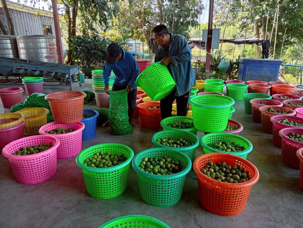 นายมานพ ธัญญเจริญ นักวิชาการส่งเสริมการเกษตรชำนาญการ รับผิดชอบงานส่งเสริมการเกษตรตำบลเขาพระและตำบลปากน้ำ ออกเยี่ยมเยียนเกษตรกรปราดเปรื่อง ผู้ปลูกมะนาว (แป้นรำไพ) ชื่อนายเทียนชัย วรางค์เดช หมู่ที่ 2 ตำบลปากน้ำ อำเภอเดิมบางนางบวช จังหวัดสุพรรณบุรี ซึ่งมีเนื้อที่ปลูกจำนวน 20 ไร่ เพื่อสอบถามสถานการณ์ราคาขายในปัจจุบัน ตลอดจนปัญหาอุปสรรคในการดำเนินกิจกรรม โดยเกษตรกรได้ส่งขายให้กับร้านอาหารในพื้นที่จังหวัดสุพรรณบุรี เเละจังหวัดใกล้เคียง