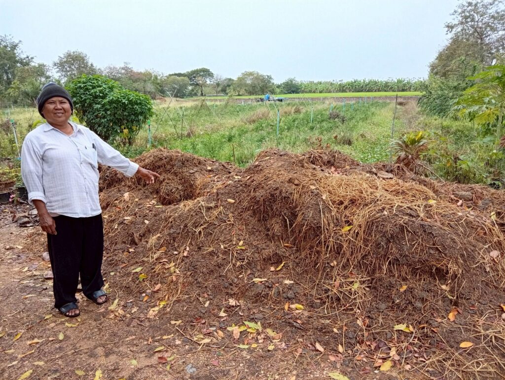 ซึ่งได้เข้าเยี่ยมชมแปลงปลูกพริกจำนวน 4 ไร่ของ นางสาวบุญนำ นกเล็ก เกษตรกรปราดเปรื่อง (Smart Farmer) ต้นแบบการทำเกษตรยั่งยืน ซึ่งโดดเด่นในการนำวัสดุเหลือใช้ทางการเกษตรมาสร้างมูลค่า โดยมีการจัดทำ กองปุ๋ยหมักจากฟางข้าวและมูลสัตว์ เพื่อใช้บำรุงพืชผักในแปลงแทนการใช้สารเคมี พร้อมทั้งใช้ฟางแห้งคลุมหน้าดินเพื่อรักษาความชื้นและปรับปรุงโครงสร้างดิน ส่งผลให้พริกมีคุณภาพดีและเป็นที่ต้องการของตลาดในชุมชน อีกทั้งเป็นตัวอย่างการปลูกพืชใช้น้ำน้อย หลังฤดูการทำข้าวนาปี