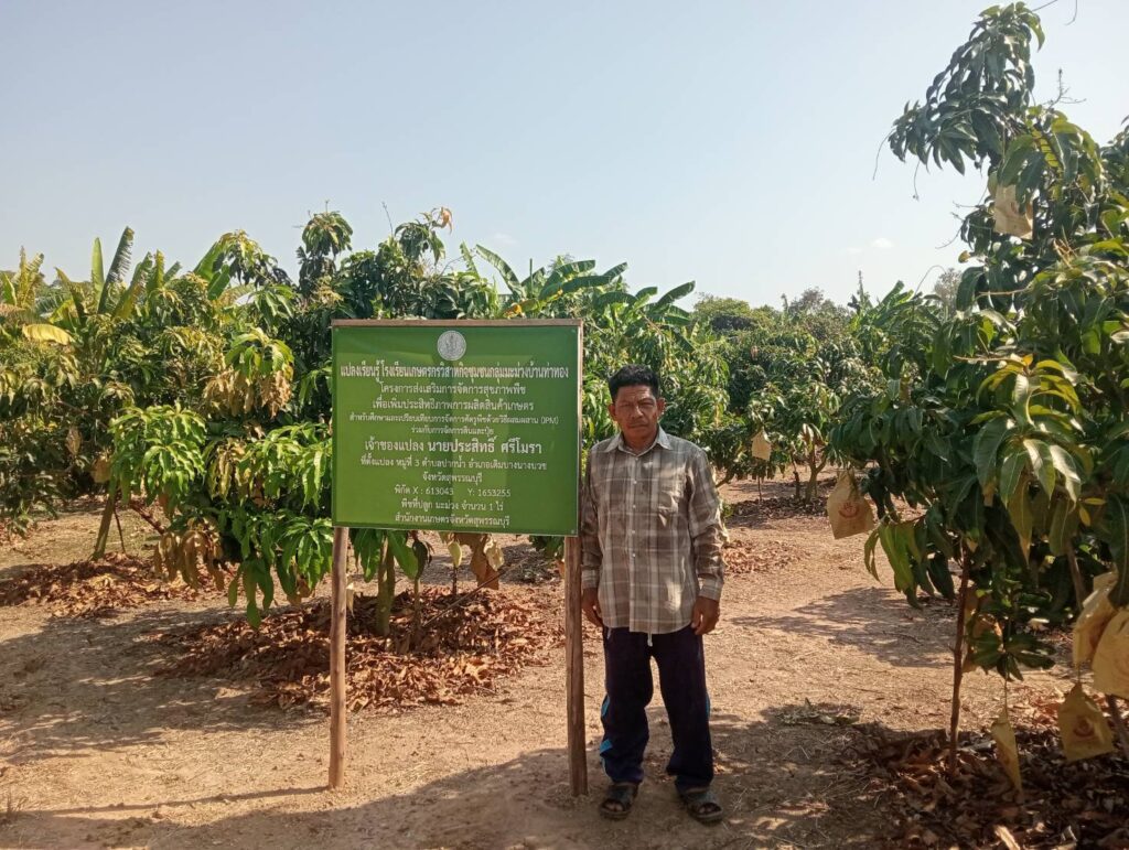 นายมานพ ธัญญเจริญ นักวิชาการส่งเสริมการเกษตรชำนาญการ สำนักงานเกษตรอำเภอเดิมบางนางบวช ลงพื้นที่ติดตามกิจกรรมการทำสวนมะม่วงน้ำดอกไม้สีทองและมะม่วงเขียวเสวย ของนายประสิทธิ์ ศรีโมรา เกษตรกรปราดเปรื่อง (Smart Farmer) หมู่ที่ 6 ต.ปากน้ำ อ.เดิมบางนางบวช จ.สุพรรณบุรี ซึ่งเป็นสมาชิกวิสาหกิจชุมชนกลุ่มมะม่วงบ้านท่าทอง และสมาชิกกลุ่มแปลงใหญ่มะม่วงตำบลปากน้ำ
