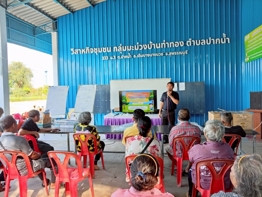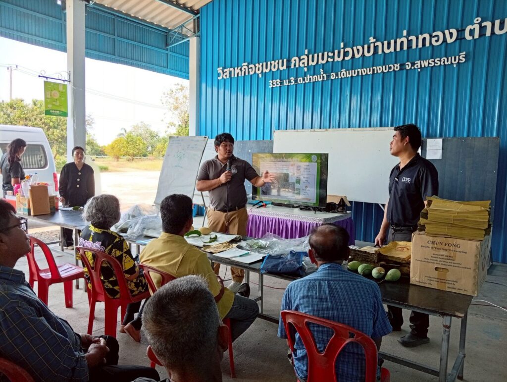 ณ วิสาหกิจชุมชนกลุ่มมะม่วงบ้านท่าทอง ต.ปากน้ำ อ.เดิมบางนางบวช จ.สุพรรณบุรี