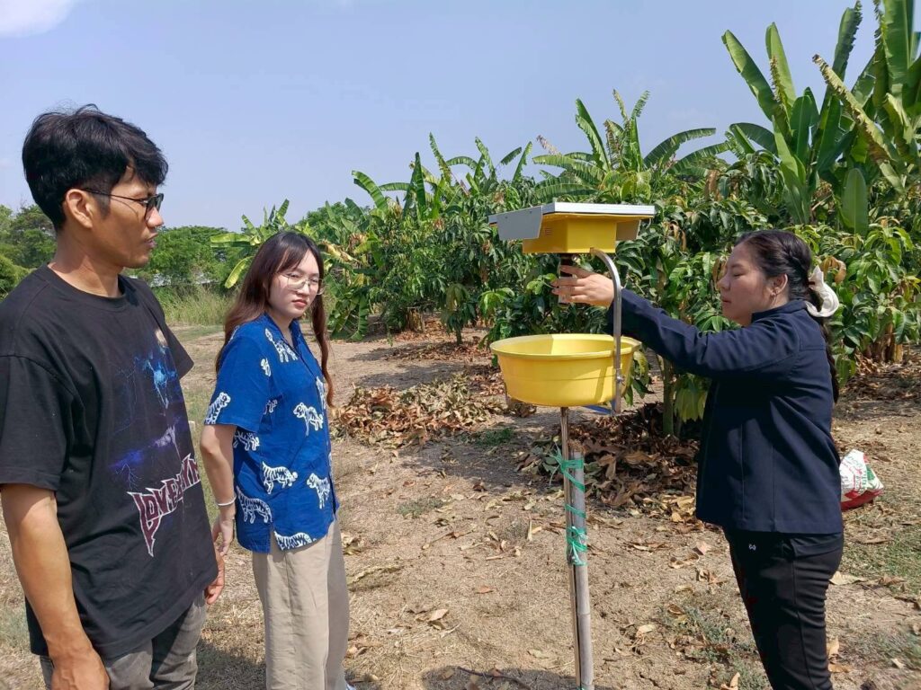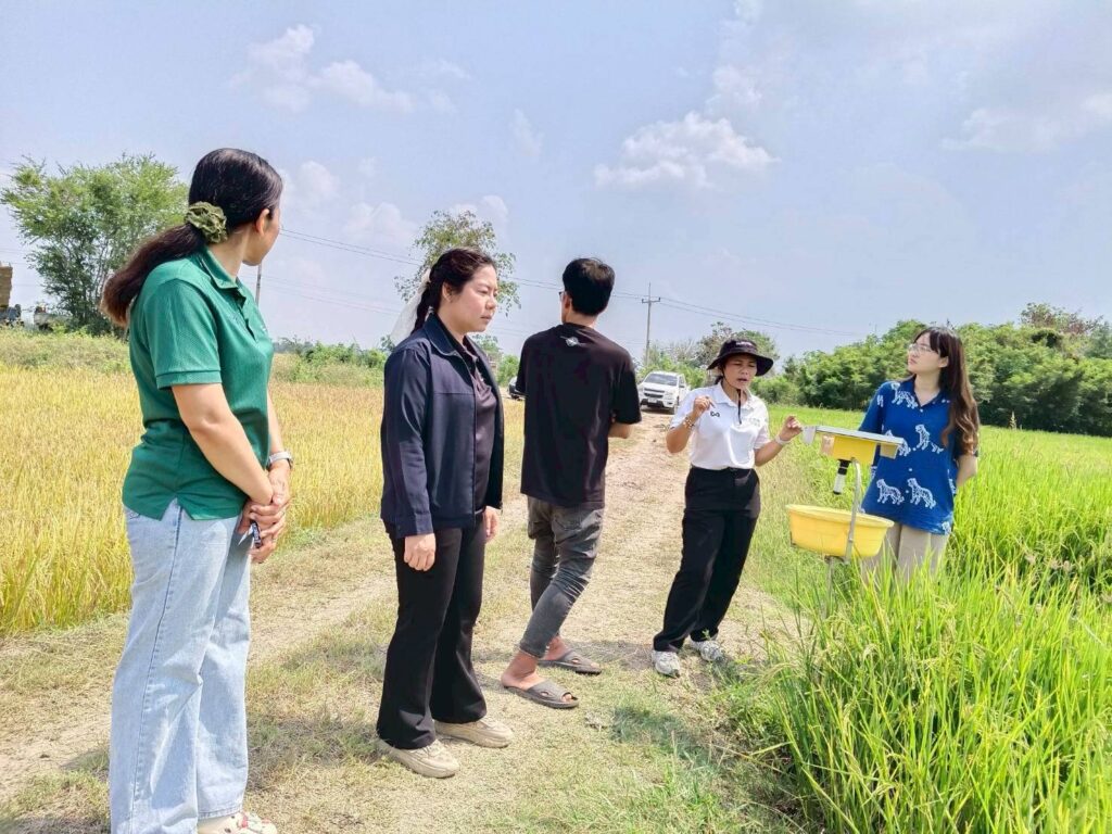 นางสาววราพร หลวงปลอด มอบหมายให้นางสาวกนกวรรณ เกษมณี และนางสาวพัชรี ศรีโมรา นักวิชาการส่งเสริมการเกษตรชำนาญการ พร้อมด้วยเจ้าหน้าที่บริษัทเอกชนติดตามสถานการณ์ศัตรูพืชในพื้นที่ ของนางสวณีย์ โพธิ์รัง smart farmer ตำบลเดิมบางและนายประสิทธิ์ ศรีโมรา smart farmer ตำบลปากน้ำ พร้อมทั้งสอบถามข้อมูลประสิทธิภาพเครื่องดักจับแมลง ทั้งนี้ เพื่อเฝ้าระวังแมลงศัตรูพืชในแปลง หากพบการระบาด ให้แจ้งทางสำนักงานเกษตรอำเภอเดิมบางนางบวช เพื่อหาแนวทางป้องกันและแก้ไขต่อไป ณ หมู่ที่ 11 ตำบลเดิมบาง อำเภอเดิมบางนางบวช จังหวัดสุพรรณบุรี