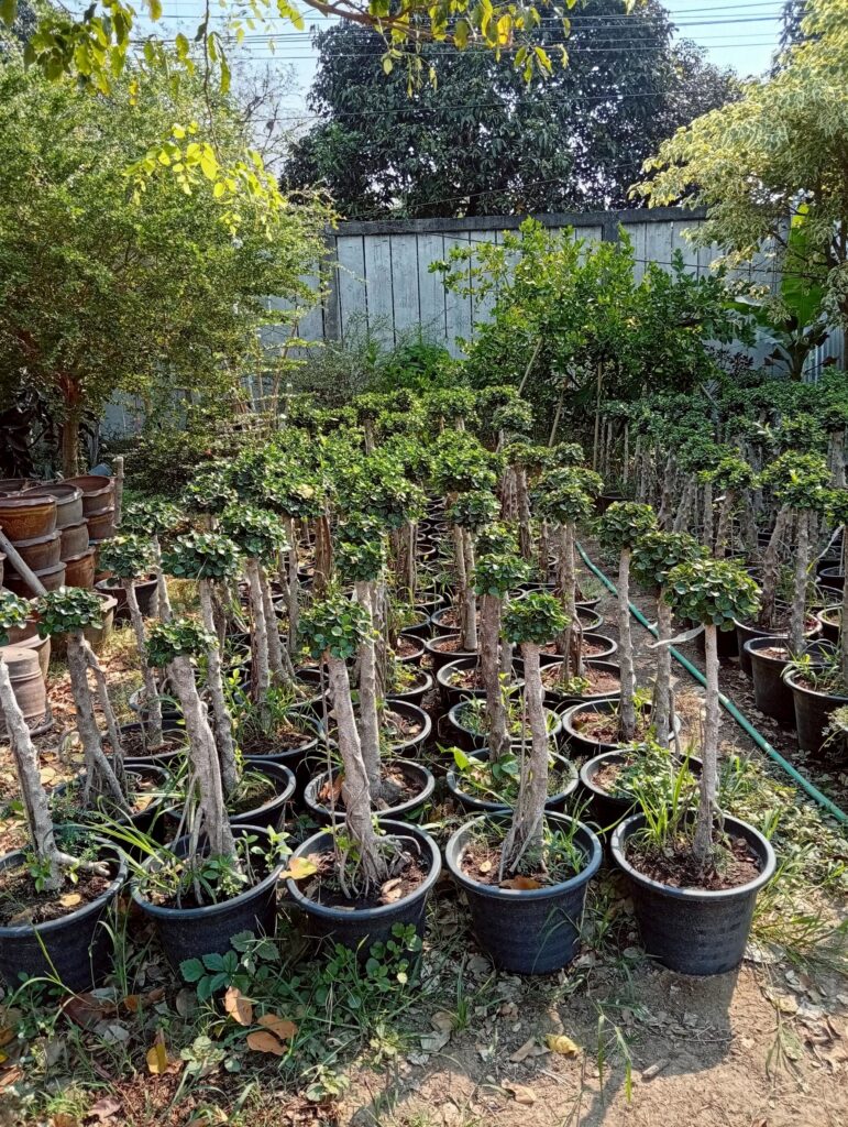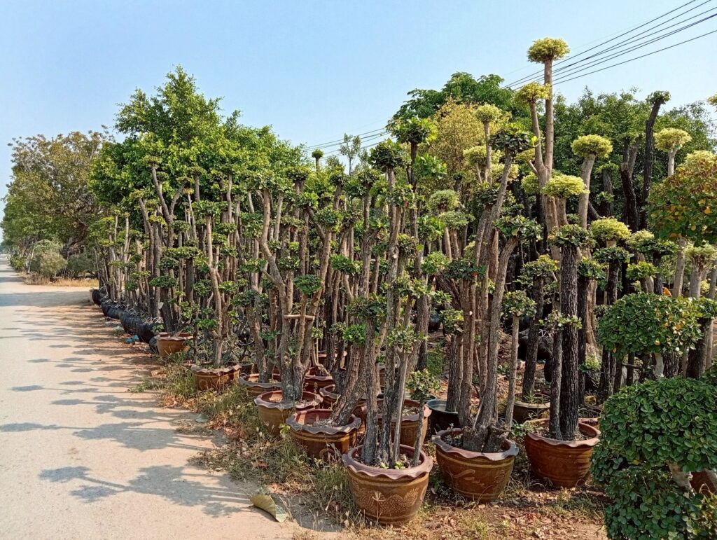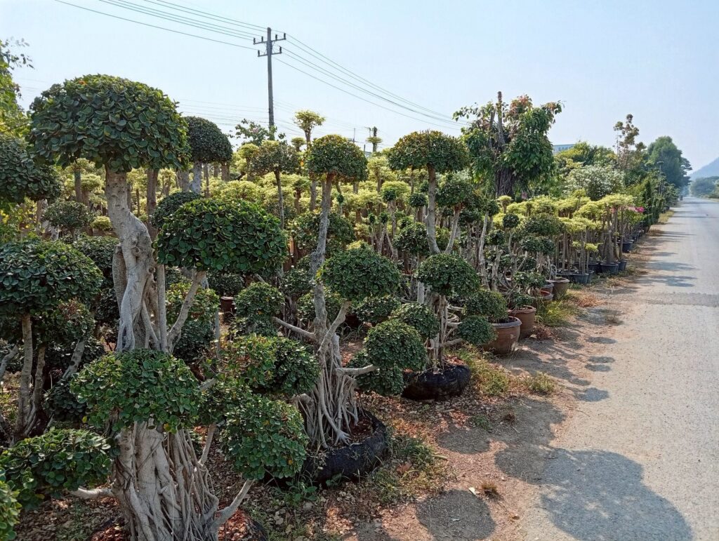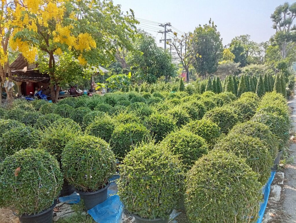 จากการลงพื้นที่พบว่า เกษตรกรมีการปลูกไม้ดอกไม้ประดับและไม้ขุดล้อมหลากหลายชนิด ที่เป็นความต้องการของตลาด อาทิ ผกากรอง, ชาดัด, เฟื่องฟ้า, ข่อย, โมกด่าง, ช้อนเงินช้อนทอง และตะโก รวมถึงไม้ล้อมขนาดใหญ่ เป็นต้น โดยมีราคาจำหน่ายตั้งแต่หลักร้อย ถึงหลักพันบาทขึ้นไป ตามชนิด ขนาด และความสวยงาม ด้านสถานการณ์และข้อจำกัดในปัจจุบันที่พบ :