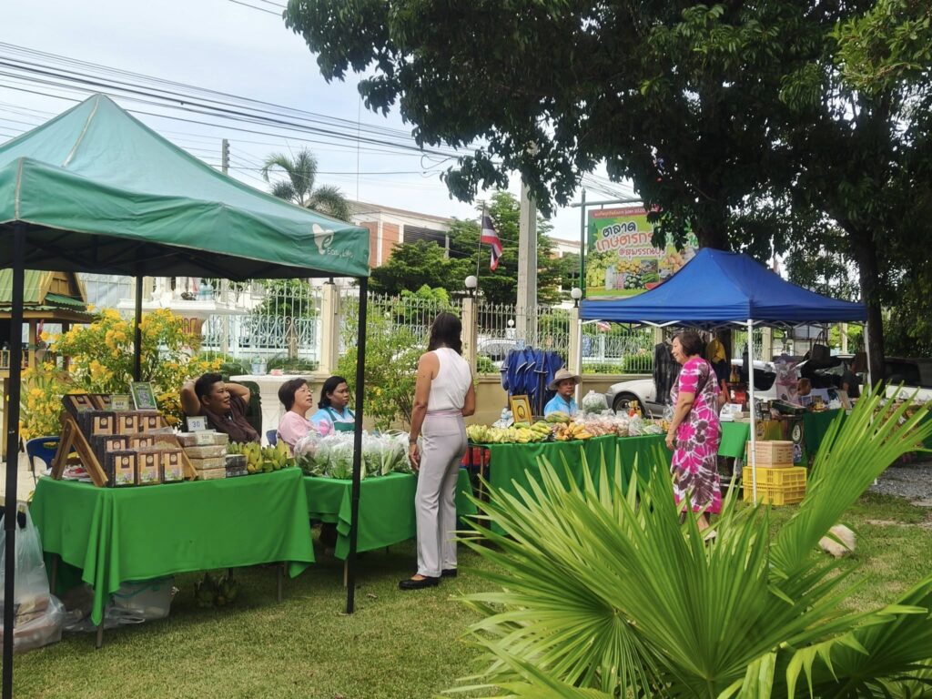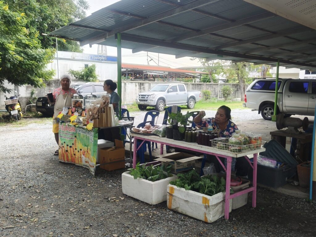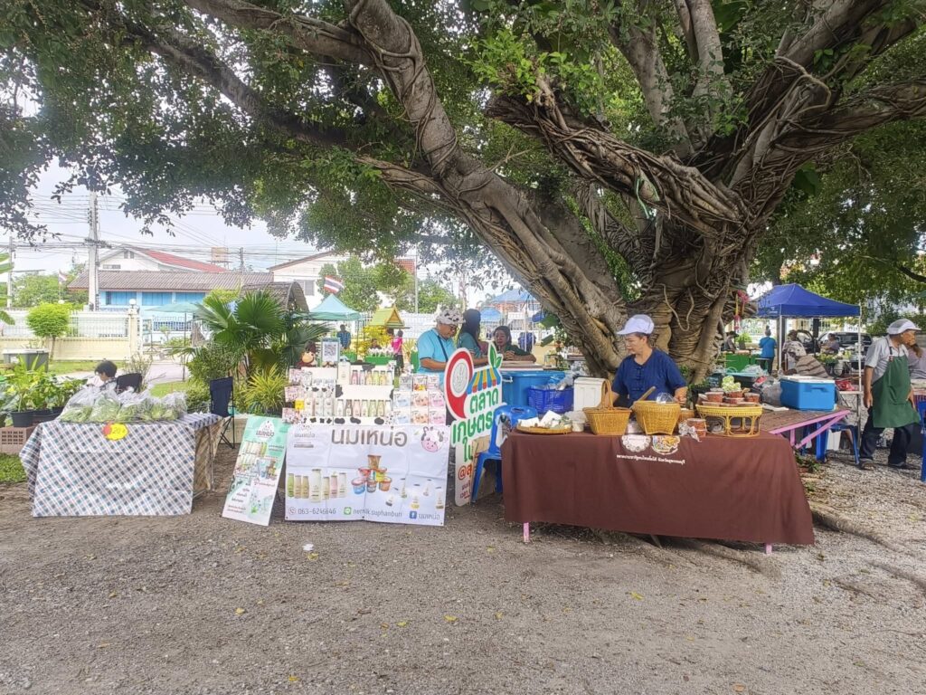 เจ้าหน้าที่สำนักงานเกษตรอำเภอดอนเจดีย์ ร่วมงานกิจกรรมตลาดเกษตรกรในสวน @สุพรรณบุรี โดยนำตะกร้าจักสานจากหวายเทียม ซึ่งเป็นผลิตภัณฑ์ของกลุ่มแม่บ้านเกษตรกรกรุ๊ปรักษ์ดอนเจดีย์ อีกทั้งในงานยังมีพืชผลทางการเกษตรและสินค้าจากเกษตรกรอีกมากมาย ช้อปจากเกษตรกรตัวจริง ส่งถึงผู้บริโภคโดยตรง