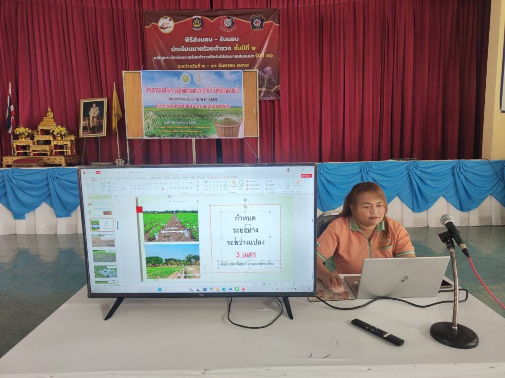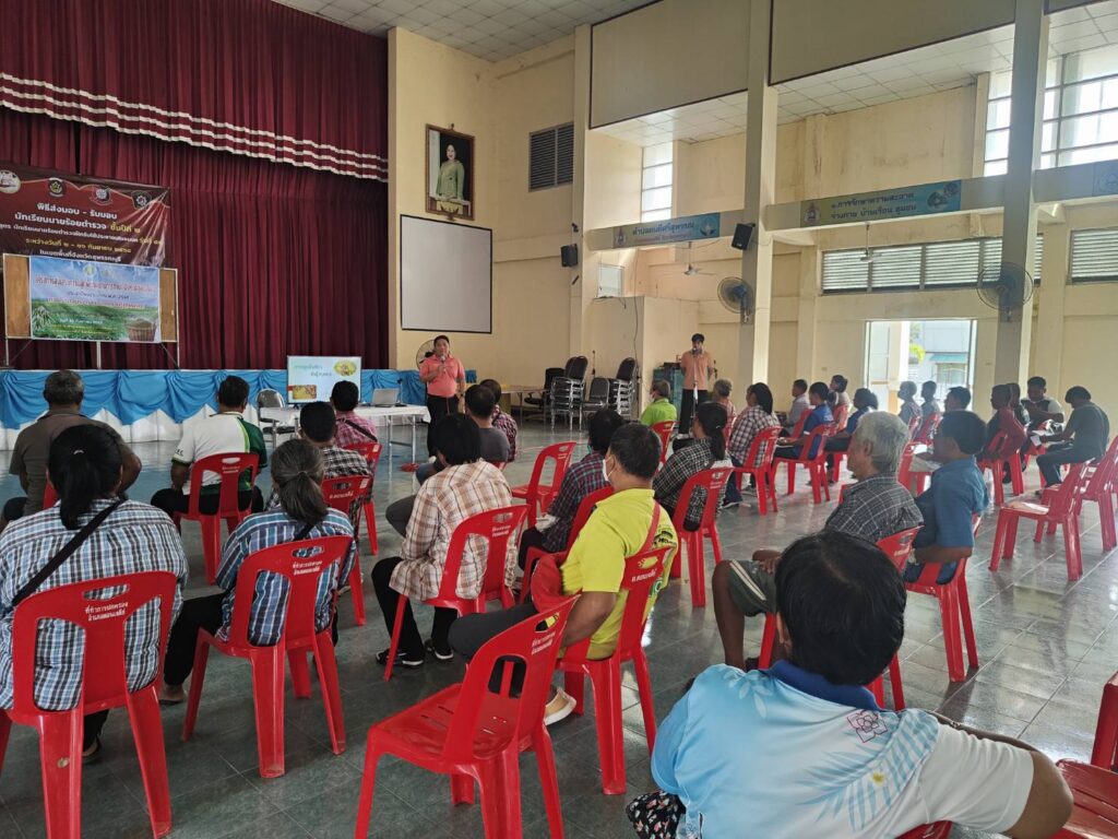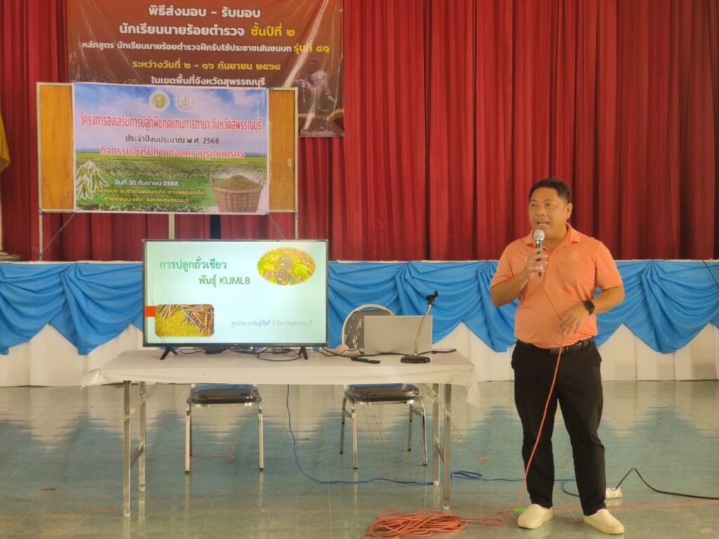 นายปิยะ บุญเรืองรอด นักวิชาการส่งเสริมการเกษตรชำนาญการ รักษาราชการแทน เกษตรอำเภอดอนเจดีย์ พร้อมด้วยเจ้าหน้าที่สำนักงานเกษตรอำเภอดอนเจดีย์ จัดเวทีอบรมถ่ายทอดความรู้โครงการส่งเสริมการปลูกพืชทดแทนการทำนา จังหวัดสุพรรณบุรี ประจำปีงบประมาณ 2568 โดยมีวัตถุประสงค์เพื่อลดรอบการทำนา ดวยการพักการทำนาสลับปรับเปลี่ยนไปปลูกพืชทางเลืออื่น สร้างรายได้จากการปลูกพืชอื่นทดแทนการปลูกข้า และสร้างโอกาสให้กับเกษตรกรได้เรียนรู้การเพาะปลูกพืชอื่นในพื้นที่นา เพื่อเป็นเกษตรกรรมทางเลือกใก้เกศตากรในระยะยาวโดยมีบุคคลเป้าหมายเป็นเกษตรกร จำนวน 50 ราย