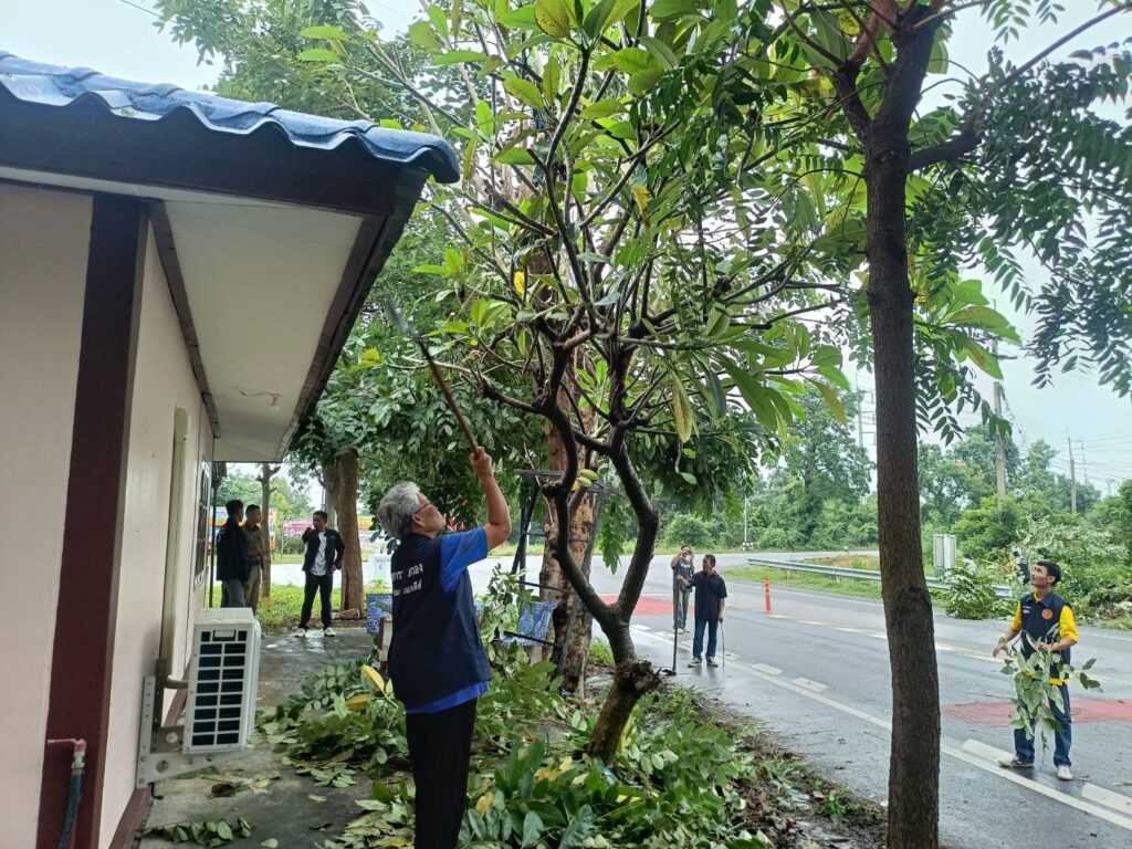 - กิจกรรม การตัดแต่งกิ่งไม้ ต้นไม้รอบบริเวณที่พักสายตรวจประจำตำบลทะเลบก