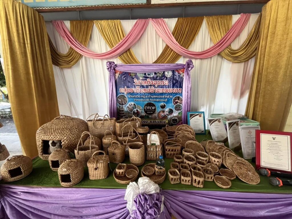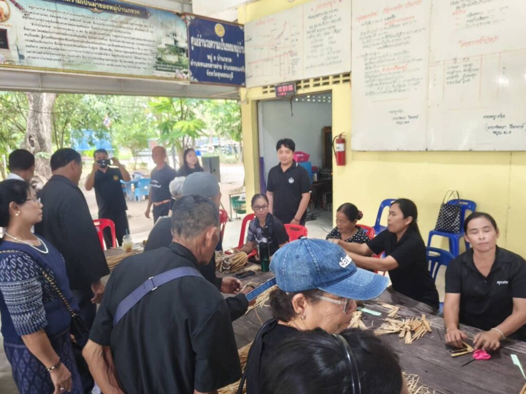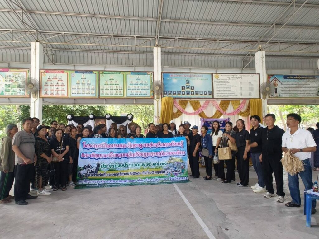 วันที่ 14 พฤศจิกายน 2568 นางสาวนีลนภา ศิลปรัตน์ นักวิชาการส่งเสริมการเกษตรชำนาญการ และนายวรุตม์ ทองสุก นักวิชาการส่งเสริมการเกษตรปฏิบัติการร่วมกับวิสาหกิจชุมชนกลุ่มอาชีพแม่บ้านเกษตรกรบ้านกรวดต้อนรับคณะศึกษาดูงานจากองค์การบริหารสวนตำบลเขาน้อย อำเภอเขาชะเมา จังหวัดระยอง ศึกษาดูงานส่งเสริมการเรียนรู้และพัฒนาอาชีพตามหลักปรัชญาเศรษฐกิจพอเพียง ซึ่งกลุ่มมีกิจกรรมผลิตสิ่งของเครื่องใช้ไม่ว่าจะเป็นกระเป๋า ที่รองหม้อ ตะกร้า ที่ทำมาจากผักตบชวา เป็นการใช้วัสดุจากธรรมชาตินำมาสร้างมูลค่าและสร้างรายได้เป็นอาชีพเสริมให้กับคนในชุมชน