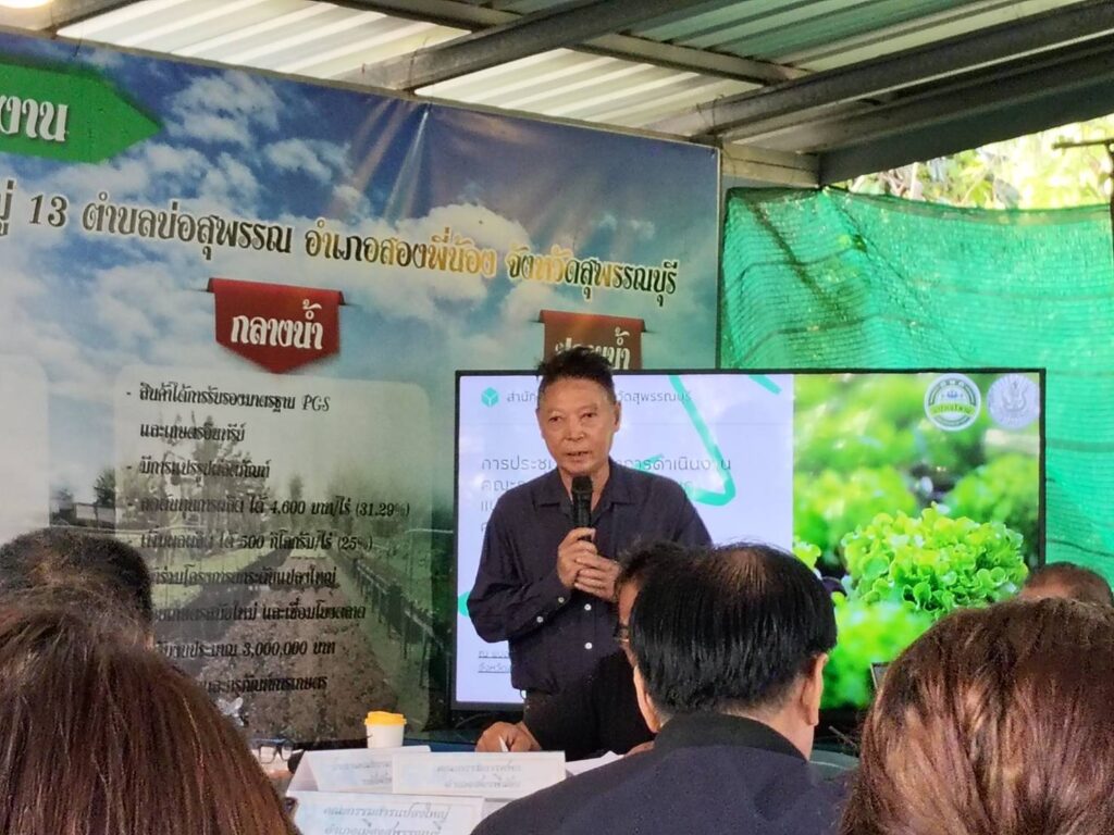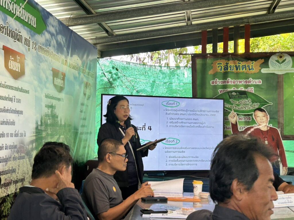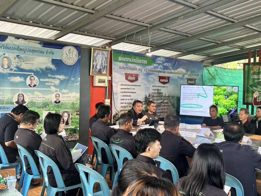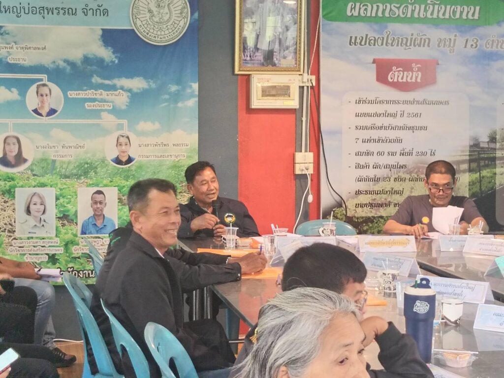 วันที่ 12 ธันวาคม 2568 นางสาวพัทรลดา อ่อนวงษ์ นักวิชาการส่งเสริมการเกษตร สำนักงานเกษตรอำเภอดอนเจดีย์ พร้อมด้วยนายสุริยา ศรี โพธิ์ทอง ประธาน ศพก.ระดับอำเภอ และนายกำพล ทองโสภา ประธานแปลงใหญ่ระดับอำเภอ ร่วมประชุมเชื่อมโยงการดำเนินงานคณะกรรมการเครือข่าย ศพก. และแปลงใหญ่ ระดับจังหวัด ครั้งที่ 1/2569 เพื่อแลกเปลี่ยนการดำเนินงานของ ศพก. และแปลงใหญ่ ณ แปลงใหญ่ผัก หมู่ 13 ตำบลบ่อสุพรรณ อำเภอสองพี่น้อง จังหวัดสุพรรณบุรี
