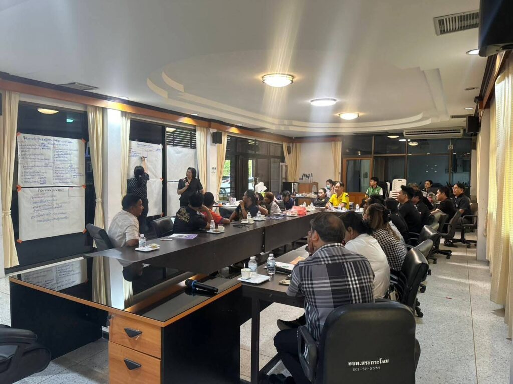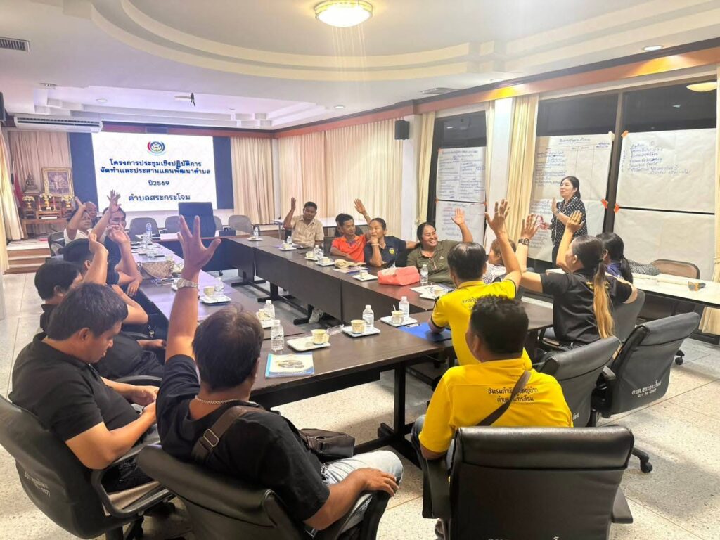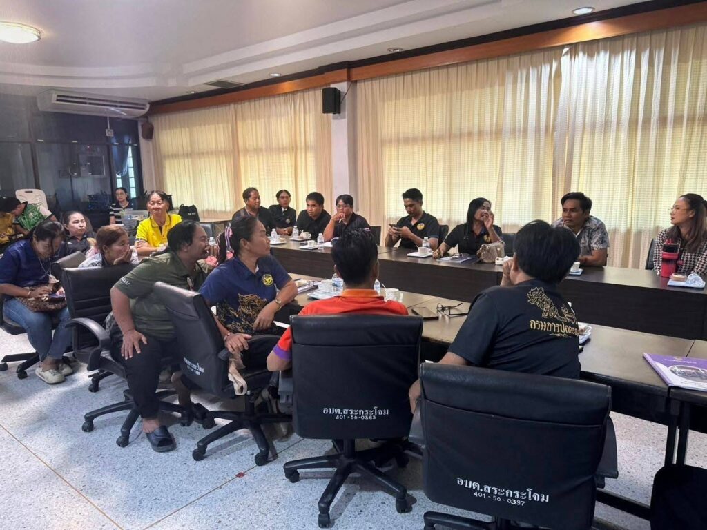 🏤 ณ ห้องประชุม องค์การบริหารส่วนตำบลสระกระโจม อำเภอดอนเจดีย์ จังหวัดสุพรรณบุรี