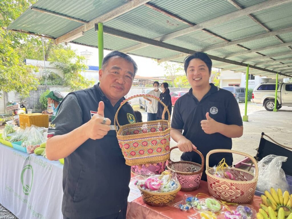 ⏩ เจ้าหน้าที่สำนักงานเกษตรอำเภอดอนเจดีย์ ร่วมงานกิจกรรมตลาดเกษตรกรในสวน @สุพรรณบุรี โดยนำตะกร้าจักสานจากหวายเทียม ซึ่งเป็นผลิตภัณฑ์ของกลุ่มแม่บ้านเกษตรกรกรุ๊ปรักษ์ดอนเจดีย์ อีกทั้งในงานยังมีพืชผลทางการเกษตรและสินค้าจากเกษตรกรอีกมากมาย ช้อปจากเกษตรกรตัวจริง ส่งถึงผู้บริโภคโดยตรง