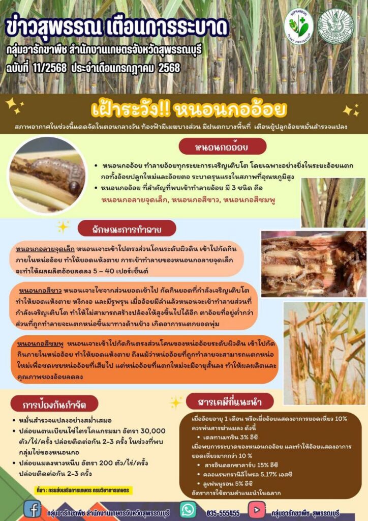 เตือนการระบาด ฉบับที่ 12/2568 เฝ้าระวัง!! เพลี้ยแป้งสีชมพูในอ้อย