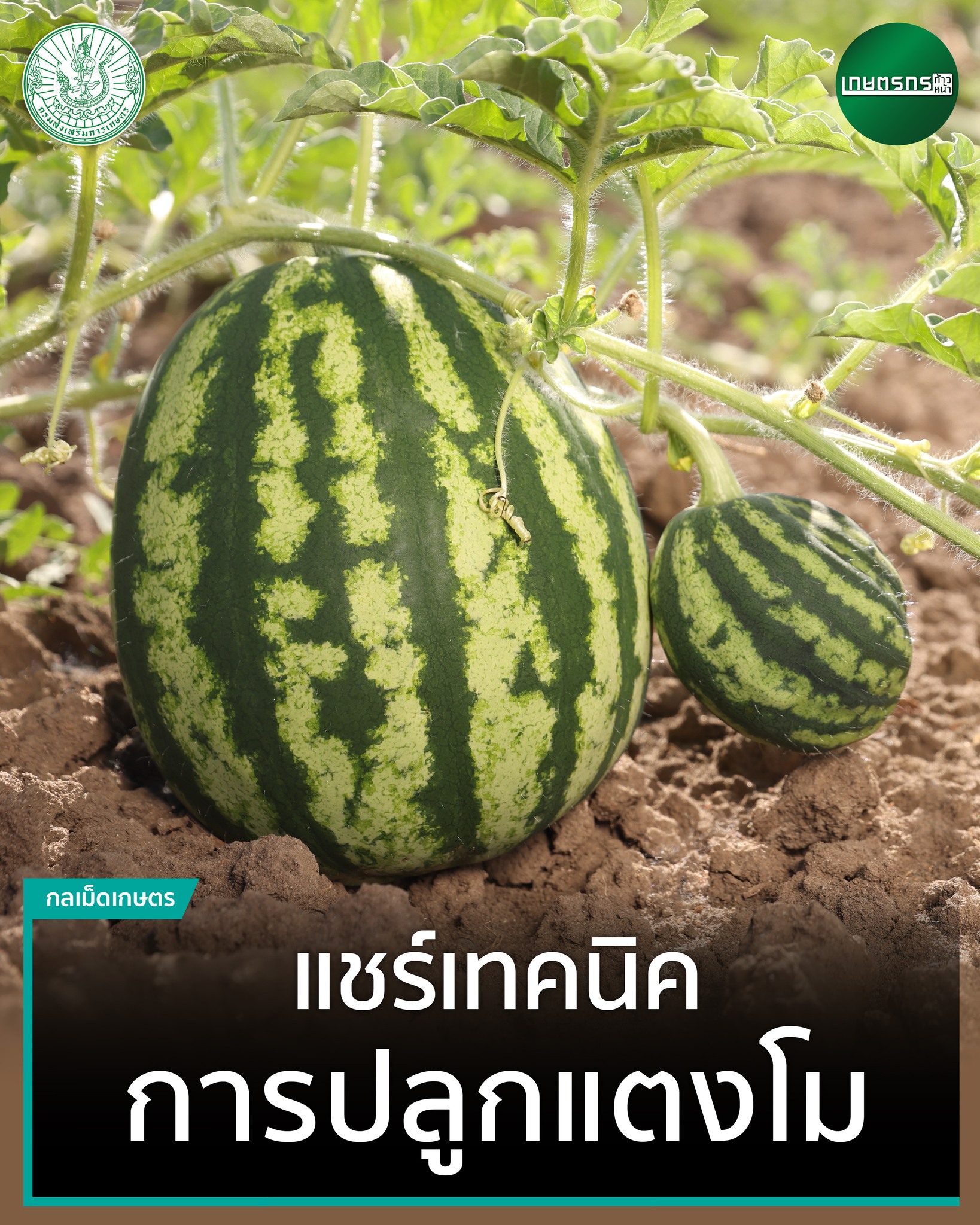 ข่าวประชาสัมพันธ์ #แตงโม อีกหนึ่งพืชใช้น้ำน้อยน่าปลูก ไม่เพียงทนแล้งได้ดี แต่ยังสามารถปลูกได้เกือบตลอดปี โดยเฉพาะในช่วงหน้าแล้ง หรือ ปลูกเป็นพืชหลังนา ก็เป็นตัวเลือกสร้างรายได้เสริมที่น่าสนใจไม่แพ้พืชชนิดอื่น โดยปกติแล้ว ช่วงที่เ