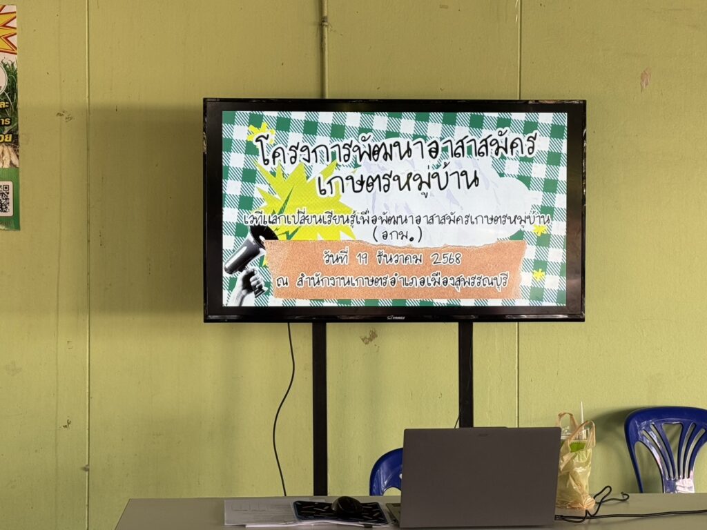 วันศุกร์ที่ 19 ธันวาคม 2568 สำนักงานเกษตรอำเภอเมืองสุพรรณบุรี โดยนางอรอนงค์ สว่างศรี เกษตรอำเภอเมืองสุพรรณบุรี นางภัทราลี ดีล้น ผู้รับผิดชอบงานอาสาสมัครเกษตรหมู่บ้าน และวิทยากรจากเจ้าหน้าที่สำนักงานเกษตรอำเภอเมืองสุพรรณบุรี จัดเวทีแลกเปลี่ยนเรียนรู้เพื่อพัฒนาอาสาสมัครเกษตรหมู่บ้าน โครงการพัฒนาอาสาสมัครเกษตรหมู่บ้าน โดยมีการบรรยายถ่ายทอดองค์ความรู้ตามหลักสูตรที่กำหนด อีกทั้งยังมีวิทยากรรับเชิญ นายพิชิต เกียรติสมพร ประธานกลุ่มแปลงใหญ่ทั่วไป (ข้าว) ตำบลสวนแตง มาถ่ายทอดองค์ความรู้ในเรื่องการทำเกษตรสมัยใหม่/การทำเกษตรอัจฉริยะ (smart farming) เพื่อเสริมสร้างองค์ความรู้ให้กับเกษตรกร ณ สำนักงานเกษตรอำเภอเมืองสุพรรณบุรี หมู่ที่ 4 ตำบลรั้วใหญ่ อำเภอเมืองสุพรรณบุรี จังหวัดสุพรรณบุรี