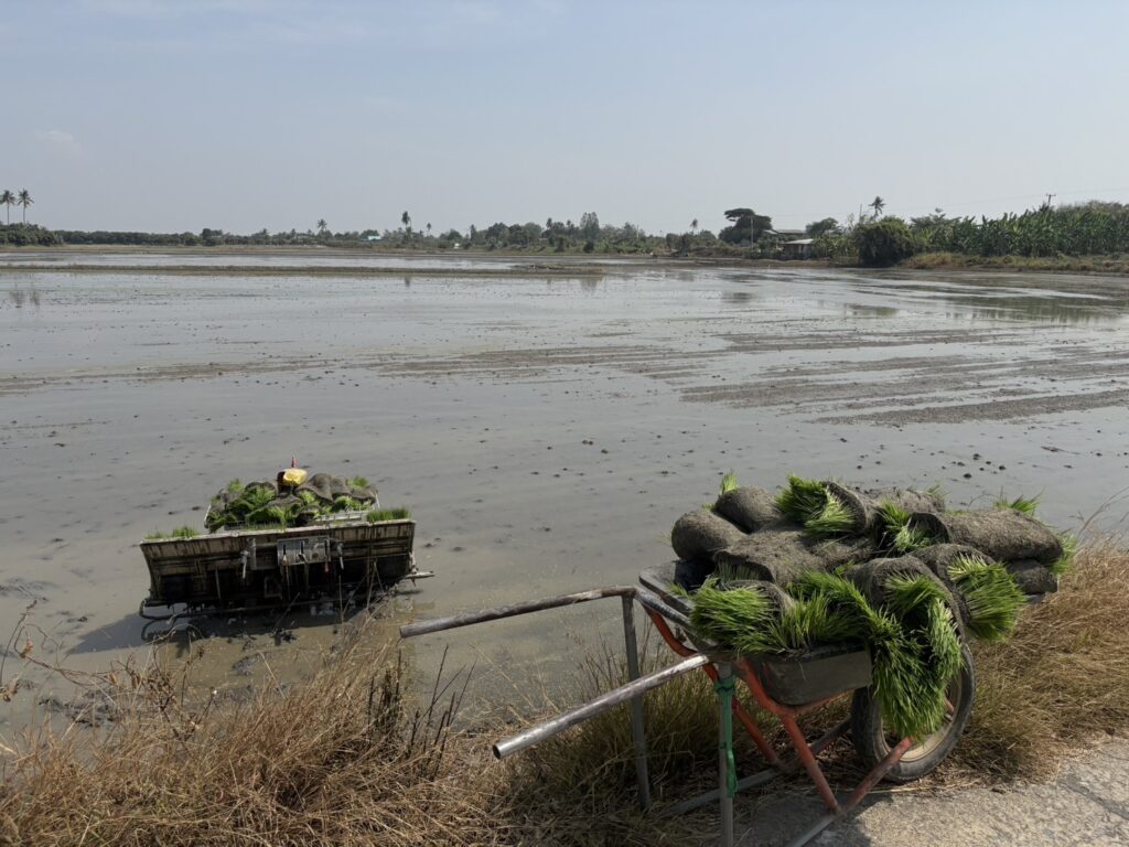 ลงพื้นที่หมู่ 6 ตำบลดอนโพธิ์ทอง ร่วมกับนายเชาวลิต ยิ้มโสภา อาสาสมัครเกษตร/เกษตรกรปราดเปรื่อง (Smart Farmer) เพื่อติดตามสถานการณ์การปลูกข้าวนาปรังในพื้นที่ หมู่ 6 ตำบลดอนโพธิ์ทอง โดยในพื้นที่ได้มีการปลูกข้าวนาปรังแล้วประมาณร้อยละ 50 ของพื้นที่ปลูกข้าวนาปรังของหมู่ 6 ตำบลดอนโพธิ์ทอง (ประมาณ 1,300 ไร่) โดยพื้นที่บางส่วนยังไม่สามารถทำนาได้ เนื่องจากน้ำยังไม่ลด ซึ่งทางองค์การบริหารส่วนจังหวัดสุพรรณบุรีได้มีการติดตั้งเครื่องสูบน้ำในบริเวณ หมู่ 6 ตำบลดอนโพธิ์ทอง เพื่อช่วยเร่งการระบายน้ำออกจากแปลงนาของเกษตรกร นอกจากนี้ยังได้ประชาสัมพันธ์การขึ้นทะเบียน/ปรับปรุงทะเบียนเกษตรกรผู้ปลูกข้าวนาปรัง ผ่านระบบ Farmbook และประชาสัมพันธ์การเฝ้าระวัง สร้างการรับรู้ และป้องปรามการเผาในพื้นที่ เพื่อสร้างความเข้าใจกับเกษตรกร สร้างแรงจูงใจให้เกษตรกรนำวัสดุเหลือใช้ทางการเกษตร ไถกลบตอซัง ทำปุ๋ยหมัก เพื่อลดปัญหาฝุ่นละออง PM 2.5 ดำเนินการภายใต้หลัก 3R เป็นการส่งเสริมการเกษตรเพื่อแก้ไขปัญหาการเผาในพื้นที่เกษตรกรรม