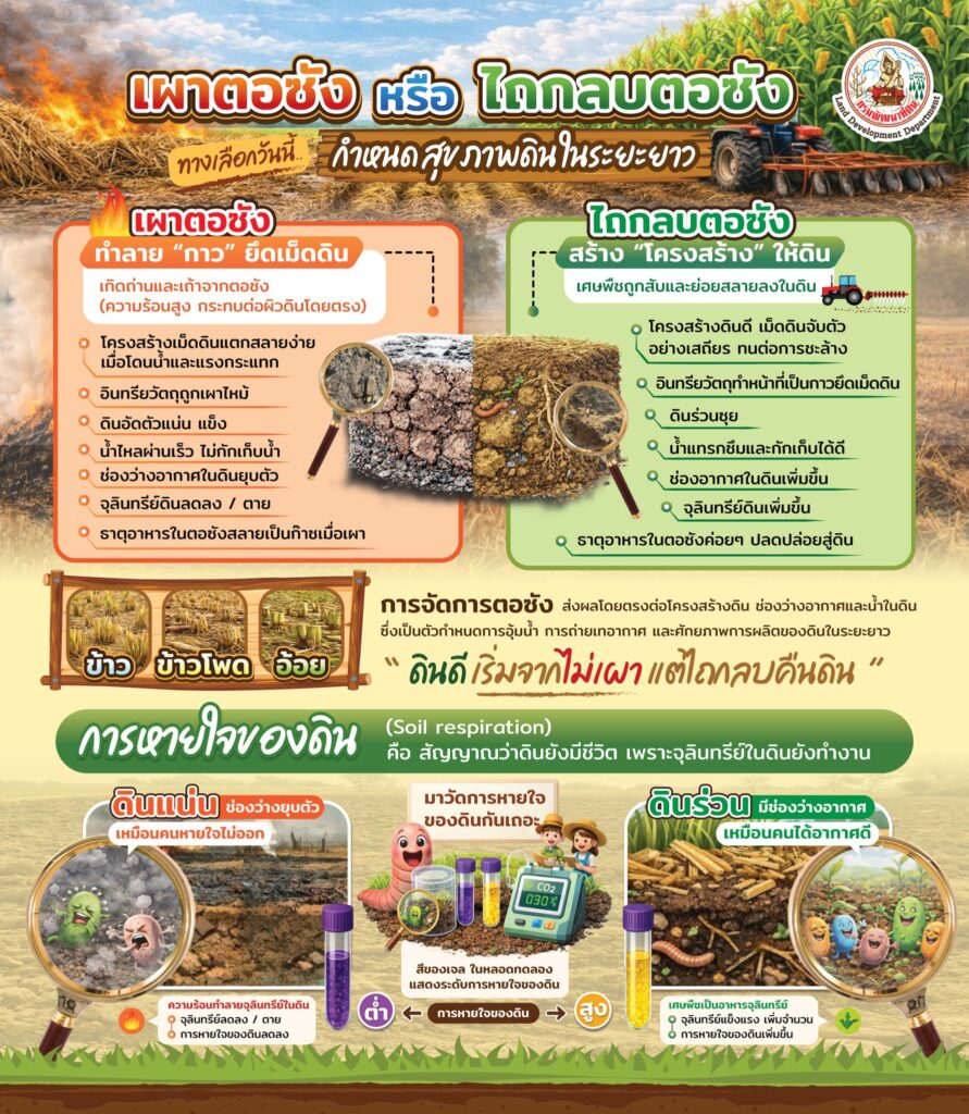 การจัดการตอซังส่งผลโดยตรงต่อโครงสร้างดิน น้ำ อากาศ และศักยภาพการผลิตในระยะยาว