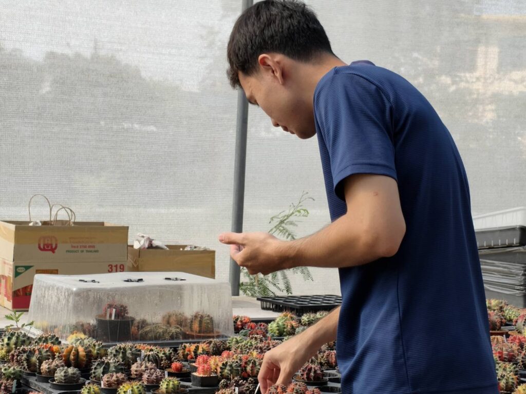 วันพุธที่ 4 กุมภาพันธ์ 2569 นางสาวศิริวรรณ สีกาหลง นักวิชาการส่งเสริมการเกษตรปฏิบัติการ สำนักงานเกษตรอำเภอเมืองสุพรรณบุรี เยียมเยียนกิจกรรมของ นายเขมชาติ รอดมาลี Young Smart Farmer ตำบลบ้านโพธิ์ โดยเกษตรกรมีกิจกรรมเพาะเลี้ยงไม้แคสตัสเพื่อจำหน่ายตลาดออนไลน์ และออกบูธจำหน่ายทั่วประเทศ และยังจำหน่ายไปต่างประเทศ เจ้าหน้าที่ได้ร่วมพูดคุยสอบถามวิธีการจำหน่าย และสถานการณ์ตลาดในปัจจุบัน ณ ตลาดเกษตรกรในสวน อำเภอเมืองสุพรรณบุรี จังหวัดสุพรรณบุรี#ส่งเสริมสร้างสรรค์เกษตรสุพรรณบุรี