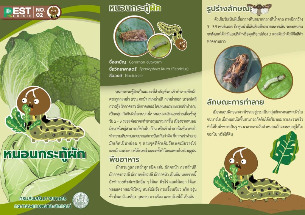 หนอนกระทู้ผัก เป็นแมลงที่สำคัญที่พบเข้าทำลายพืชผักตระกูลกะหล่ำ โดยหนอนระยะแรกเข้าทำลายเป็นกลุ่ม ระยะต่อมาจะทำลายรุนแรงมากขึ้น เนื่องจากหนอนมีขนาดใหญ่สามารถกัดกินใบ ก้าน หรือเข้าทำลายในหัวกะหล่ำ ทำความเสียหายและยากแก่การป้องกันกำจัด มักแพร่ระบาดได้รวดเร็วตลอดทั้งปีโดยเฉพาะในช่วงฤดูฝน