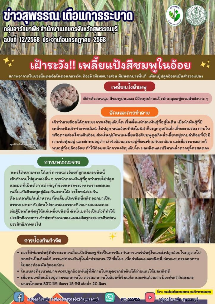 เตือนการระบาด ฉบับที่ 11/2568 เฝ้าระวัง!! หนอนกออ้อย