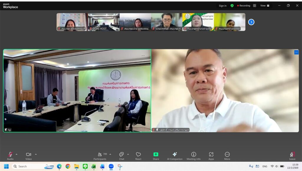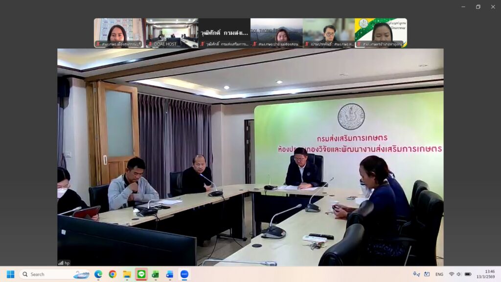 วันศุกร์ที่ 13 มีนาคม 2569 นางปรีดาพร เปี่ยมแก้ว นักวิชาการส่งเสริมการเกษตรชำนาญการ สำนักงานเกษตรอำเภอเมืองสุพรรณบุรี ผู้รับผิดชอบงานศูนย์เรียนรู้การเพิ่มประสิทธิภาพการผลิตสินค้าเกษตร (ศพก.) ระดับอำเภอ เข้าร่วมประชุมชี้แจงแนวทางการคัดเลือกและแต่งตั้ง คณะกรรมการศูนย์เรียนรู้การเพิ่มประสิทธิภาพการผลิตสินค้าเกษตร (ศพก.) ทุกระดับ ปี พ.ศ.2569 โดยมีวัตถุประสงค์เพื่อชี้แจงสร้างความเข้าใจเกี่ยวกับการคัดเลือกและแต่งตั้งคณะกรรมการ ศพก. ระดับอำเภอ ระดับจังหวัด ระดับประเทศและที่ปรึกษาคณะกรรมการเครือข่าย ศพก.ระดับประเทศ (ชุดใหม่) ให้กับเจ้าหน้าที่ระดับอำเภอ จังหวัด และสำนักงานส่งเสริมและพัฒนาการเกษตรที่ 1-6 ผ่านระบบประชุมทางไกล Zoom Meeting