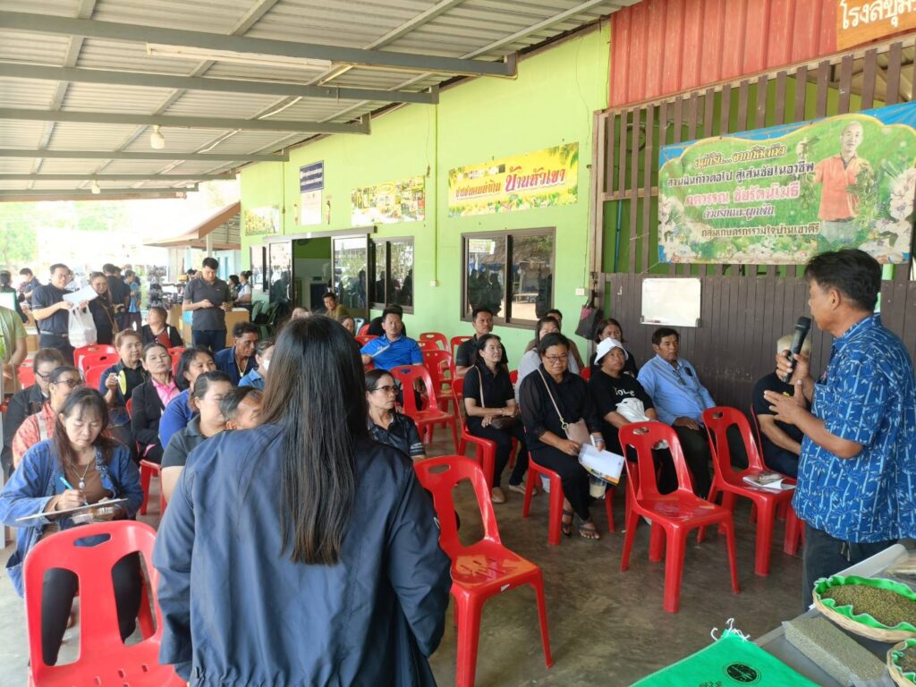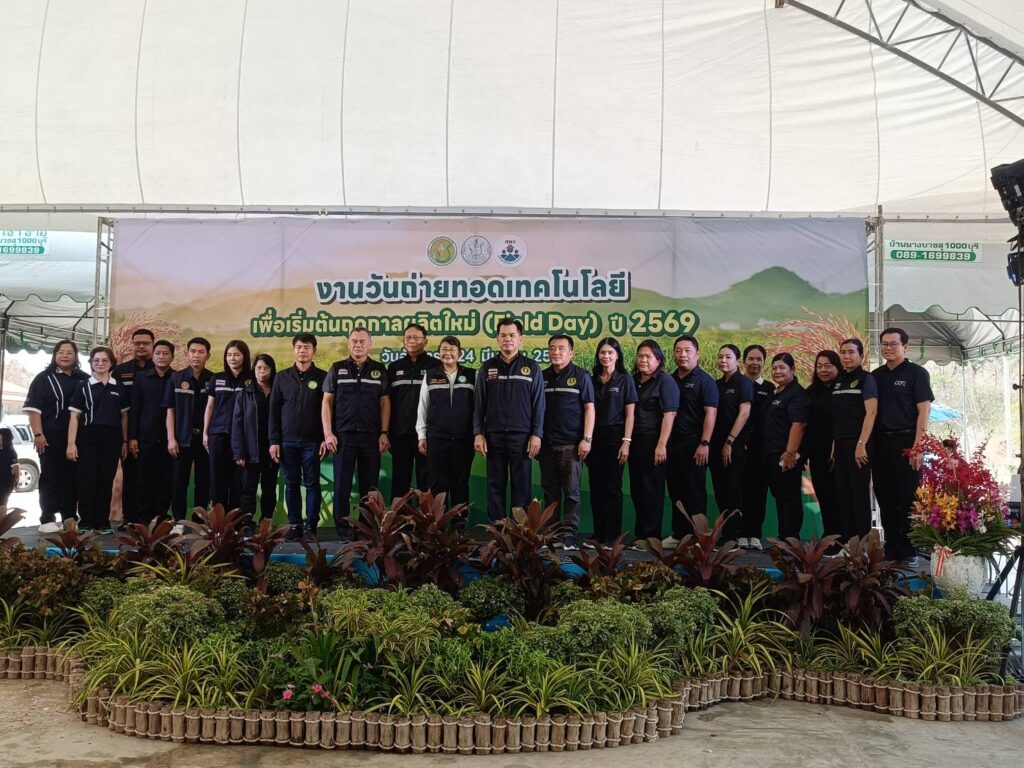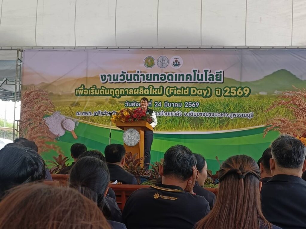 วันอังคารที่ 24 มีนาคม 2569 นางอรอนงค์ สว่างศรี เกษตรอำเภอเมืองสุพรรณบุรี พร้อมด้วยนางปรีดาพร เปี่ยมแก้ว นักวิชาการส่งเสริมการเกษตรชำนาญการ เจ้าหน้าที่ผู้รับผิดชอบงาน ศพก.ระดับอำเภอ สำนักงานเกษตรอำเภอเมืองสุพรรณบุรี และสมาชิก ศพก.อำเภอเมืองสุพรรณบุรี 5 ราย ร่วมงานวันถ่ายทอดเทคโนโลยี เพื่อเริ่มต้นฤดูกาลผลิตใหม่ (Field Day) ปี 2569 โดยมีฐานเรียนรู้เพื่อถ่ายทอดองค์ความรู้ให้กับเกษตรกร 3 ฐาน ดังนี้ 1.ฐาน 10 เทคโนโลยี การจัดการนาข้าวและการขยายผลเทคโนโลยีและนวัตกรรมเพื่อการเกษตร (APP.Tech) 2.ฐานถั่วเขียวพืชทางเลือกหรือทางรอด 3.ฐานการจัดการวัสดุเหลือใช้ทางการเกษตร