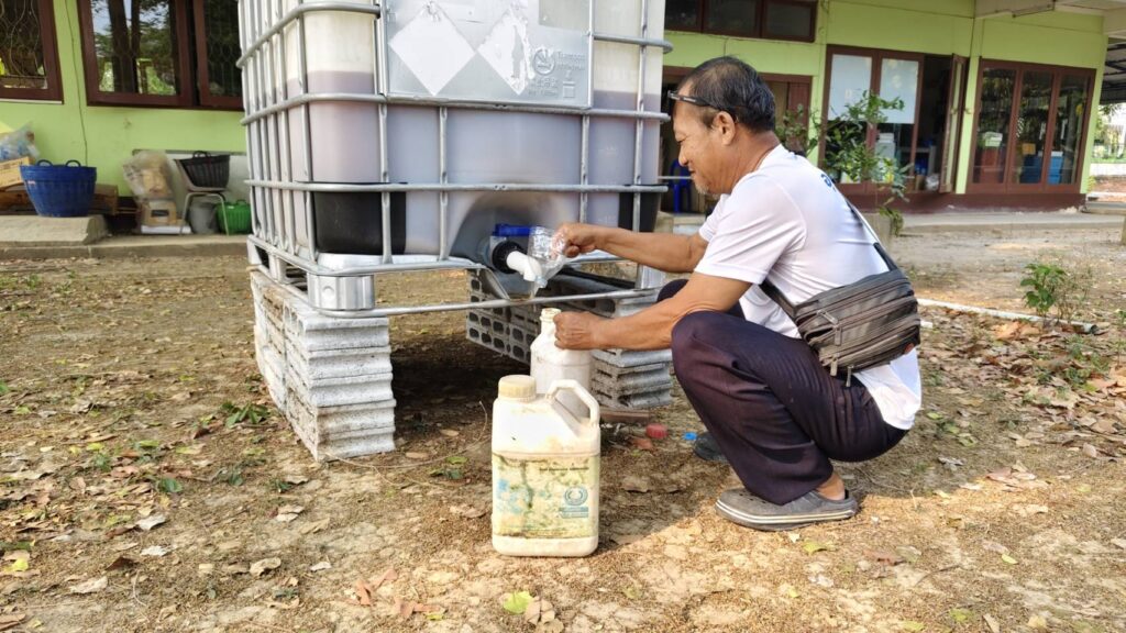 วันพุธที่ 22 เมษายน 2569 นายสุพจ นกสกุล นักวิชาการส่งเสริมการเกษตร รับผิดชอบงานส่งเสริมการเกษตรประจำตำบลรั้วใหญ่ ได้สนับสนุนน้ำหมักจุลินทรีย์ย่อยสลายตอซังฟางข้าว (กรมการข้าว) ให้กับนายเอกราช จิตต์บรรจง อาสาสมัครเกษตรหมู่บ้าน /Smart farmer หมู่ที่ 4 ตำบลรั้วใหญ่ อำเภอเมืองสุพรรณบุรี จังหวัดสุพรรณบุรี เพื่อนำไปใช้ในแปลงนาข้าวในอัตราส่วน 5 ลิตรต่อ 1ไร่ ซึ่งก็จะช่วยย่อยสลายตอซังฟางข้าวได้อย่างมีประสิทธิภาพ ทำให้ไถกลบง่าย ลดการใช้ปุ๋ยเคมี เนื่องจากจุลินทรีย์จะเปลี่ยนตอซังเป็นปุ๋ยอินทรีย์ในดิน และลดปัญหาฝุ่นควันจากการเผา เป็นต้น ตลอดจนการทบทวนบทบาทหน้าที่ของอาสาสมัครเกษตรหมู่บ้าน และการประชาสัมพันธ์การขึ้นทะเบียนเกษตรกร และการปรับปรุงทะเบียนเกษตรกรในฤดูนาปี 2569 พร้อมให้คำแนะนำเพื่อส่งเสริมและสร้างการรับรู้ การทำนาแบบเปียกสลับแห้ง การซื้อขายคาร์บอนเครดิต โรคพืชและแมลง การให้คำแนะนำและส่งเสริมให้เกษตรกรได้ใช้การวิเคราะห์ดินในไร่นา การใช้ปุ๋ยตามค่าวิเคราะห์ดิน และการจัดการดินและการผสมปุ๋ยใช้เอง