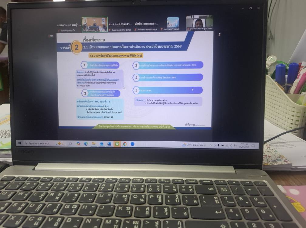 วันที่ 13 พฤศจิกายน 2568 นางสาวอาภรณ์ แตงทอง นักวิชาการส่งเสริมการเกษตรชำนาญการ เข้าร่วมการประชุมชี้แจงโครงการศูนย์เรียนรู้การเพิ่มประสิทธิภาพการผลิตสินค้าเกษตร(ศพก.) และโครงการทะเบียนเกษตรกรและบริหารจัดการสารสนเทศด้านพืช ประจำปีงบประมาณ 2569