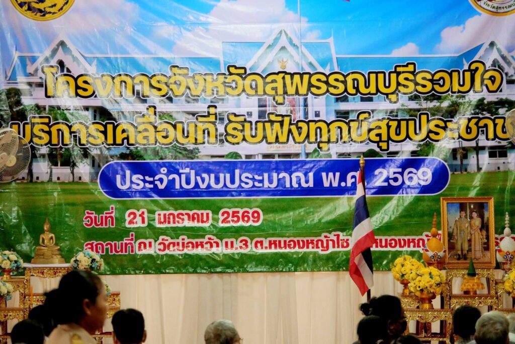 วันพุธที่ 21 มกราคม 2569 เวลา 08.00 น. นางสาวพรรณี ศรีสวัสดิ์ เกษตรอำเภอหนองหญ้าไซ และเจ้าหน้าที่สำนักงานเกษตรอำเภอหนองหญ้าไซ หัวหน้าส่วนราชการ ปลัดอำเภอ เจ้าหน้าที่ กำนัน ผู้ใหญ่บ้าน หน่วยงานราชการ หน่วยงานรัฐวิสาหกิจ และหน่วยงานภาคเอกชน เข้าร่วมโครงการจังหวัดสุพรรณบุรีรวมใจ บริการเคลื่อนที่ รับฟังทุกข์สุขประชาชน ประจำปีงบประมาณ พ.ศ. 2569