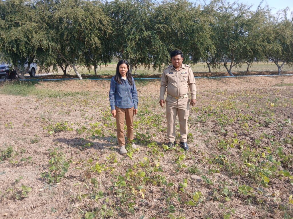 นางสาวเยาวลักษณ์ หว่างเขา นักวิชาการส่งเสริมการเกษตร รับผิดชอบงานส่งเสริมการเกษตรประจำตำบลทัพหลวง สำนักงานเกษตรอำเภอหนองหญ้าไซ ติดตามเยี่ยมเยียนเกษตรกรผู้พืชหลังนา (ถั่วเขียว) นางสาวประภ้สสร ฆ้องบ้านโข้ง พื้นที่ 13 ไร่ แนะนำการจัดการแปลงในช่วงแล้ง เตือนการระบาดโรคและแมลงศัตรูพืช