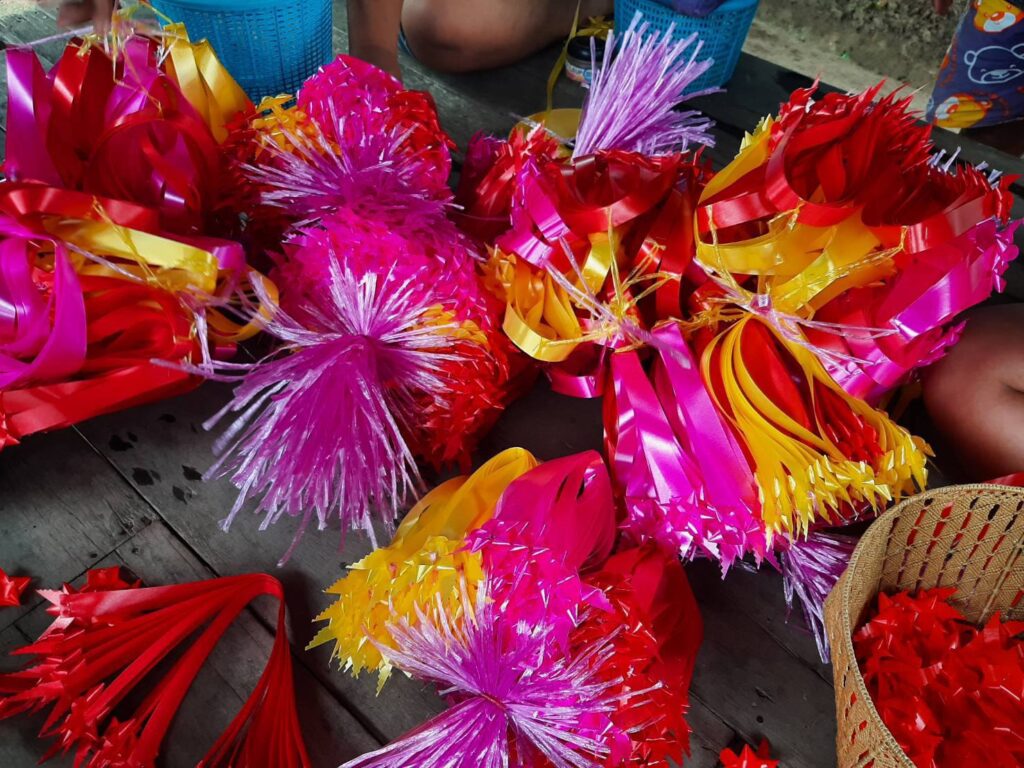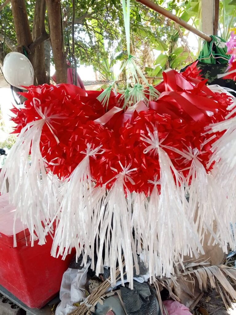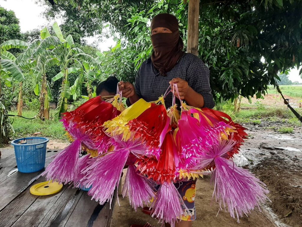 ณ ที่ทำการกลุ่มทำริบบิ้นร้อยพวงมาลัย หมู่ที่ 6 ตำบลทัพหลวง อำเภอหนองหญ้าไซ จังหวัดสุพรรณบุรี