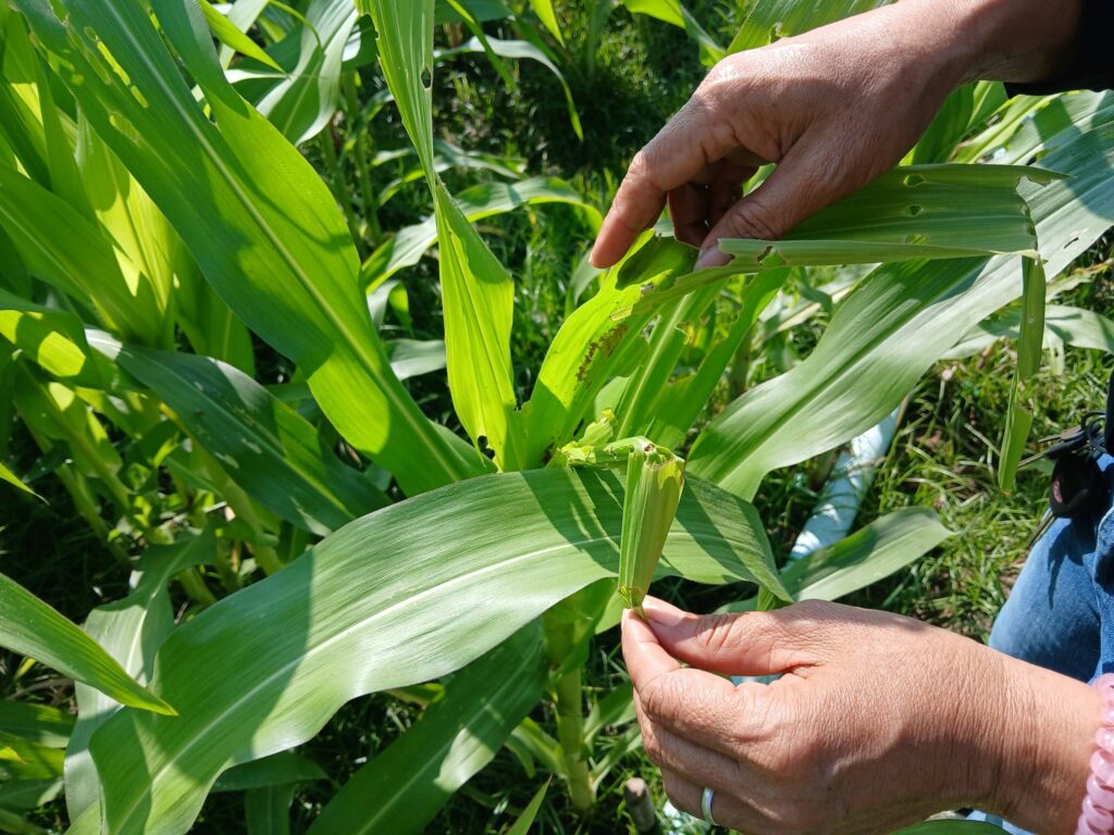 ติดตามเยี่ยมเยียน นางศิริเพ็ญ แตงทอง เกษตรกรโครงการส่งเสริมการเกษตรที่เป็นมิตรกับสิ่งแวดล้อม(กิจกรรมแปลงเรียนรู้การบริหารจัดการพื้นที่การเกษตรที่เป็นมิตรกับสิางแวดล้อมปลูกพืชใช้น้ำน้อย) ข้าวโพดเลี้ยงสัตว์ เพื่อเสริมรายได้ทดแทนการปลูกข้าวนาปรัง แนะนำการจัดการแปลง การบริหารจัดการน้ำ การหมั่นสำรวจแปลง เพื่อสำรวจโรคและแมลงแมลงศัตรูพืช