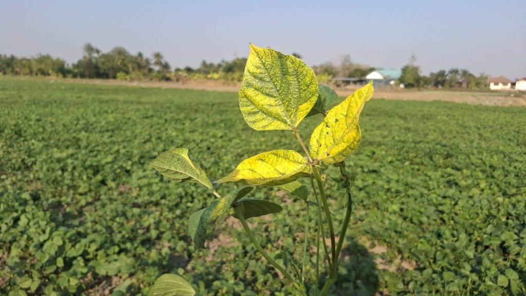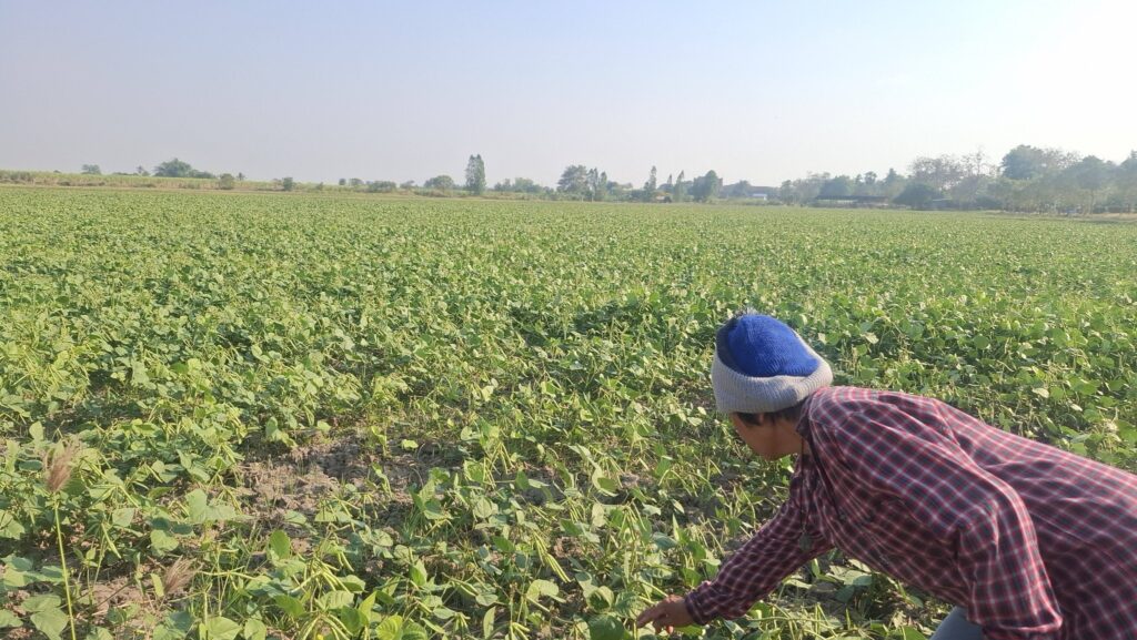 วันที่ 6 กุมภาพันธ์ 2569 นางสาวอาภรณ์ แตงทอง นักวิชาการส่งเสริมการเกษตรชำนาญการ สำนักงานเกษตรอำเภอหนองหญ้าไซ เยี่ยมเยียนสมาชิกแปลงใหญ่ทั่วไป(ข้าว) กลุ่มนาแปลงใหญ่บ้านหนองกระโดนมน ตำบลหนองโพธิ์ อำเภอหนองหญ้าไซ จังหวัดสุพรรณบุรี ที่ปลูกถั่วเขียวหลังฤดูนาปี ทั้งนี้จากการสำรวจแปลง พบการทำลายของหนอนกระทู้และโรคใบด่างจึงแนะนำให้เกษตรกรหมั่นสำรวจแปลงเมื่อพบให้ทำลาย ซึ่งได้เตือนการระบาดของโรคราน้ำค้างเนื่องจากอากาศเย็นและมีความชื้นสูง ณ บ้านหนองกระโดนมน หมู่ที่ 11 ตำบลหนองโพธิ์ อำเภอหนองหญ้าไซ จังหวัดสุพรรณบุรี