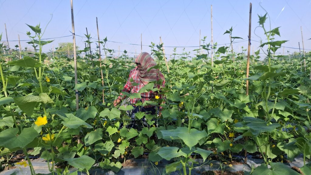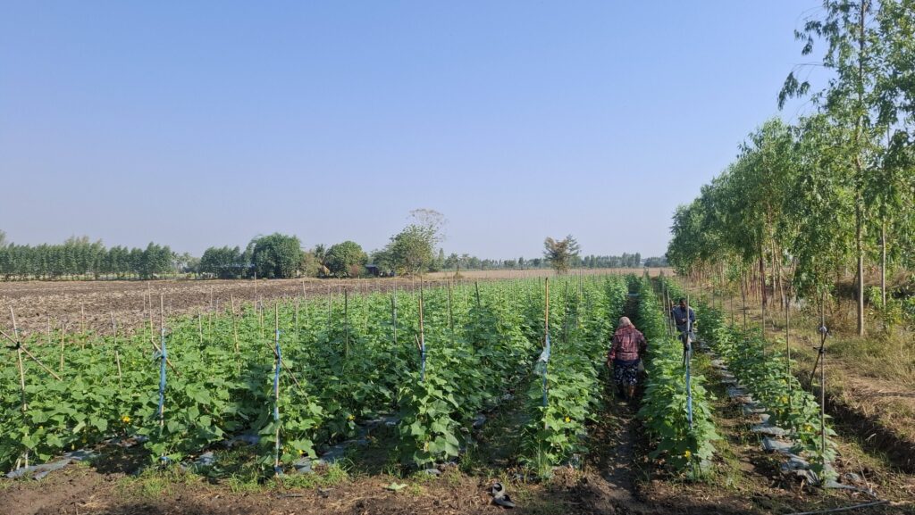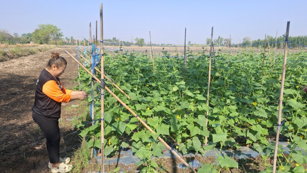 -ติดตามเกษตรกรที่เข้าร่วมโครงการการส่งเสริมการเกษตรที่เป็นมิตรกับสิ่งแวดล้อม โดยมีกิจกรรมการปลูกพืชผักแตงร้าน อายุ 35 วัน โดยเริ่มออกดอกติดผล ในพื้นที่บ้านลำพันบอง หมู่ที่ 4 ตำบลหนองโพธิ์