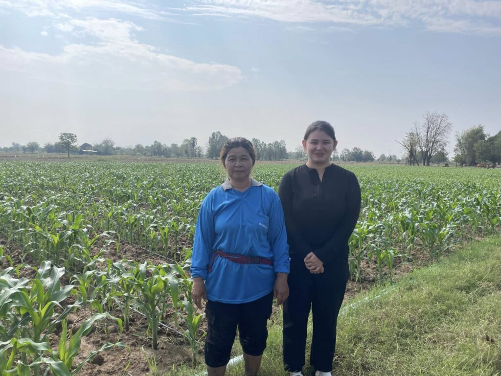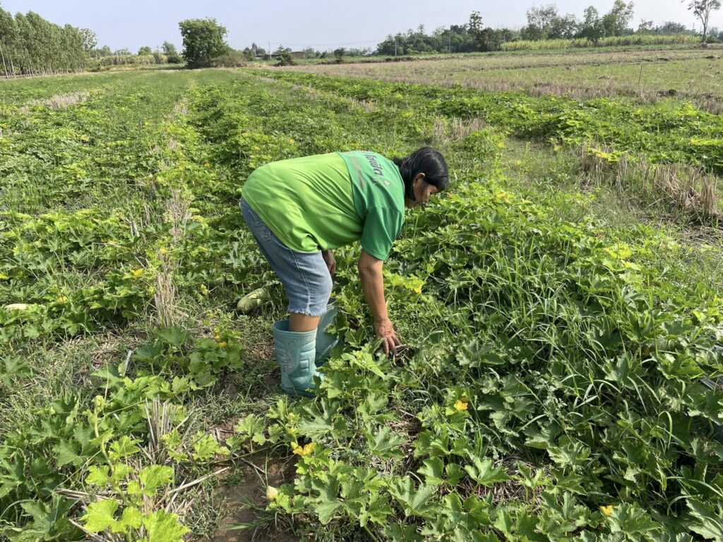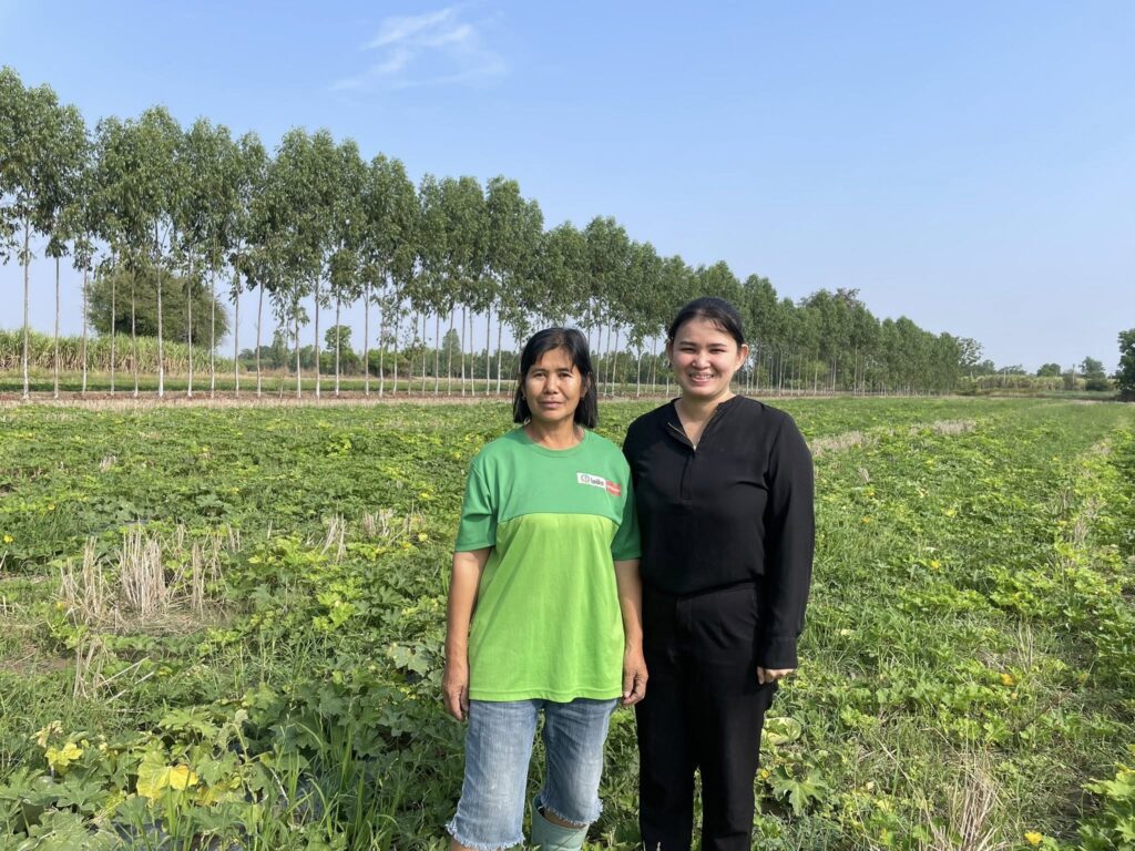 ติดตามเยี่ยมเยียน นางสาววันเพ็ญ สุขสำราญ และนางวันเพ็ญ สราคำเ กษตรกรผู้เข้าร่วมโครงการส่งเสริมการเกษตรที่เป็นมิตรกับสิ่งแวดล้อม (กิจกรรม แปลงเรียนรู้การบริหารจัดการพื้นที่การเกษตรที่เป็นมิตรกับสิ่งแวดล้อมปลูกพืชใช้น้ำน้อย) โดยเกษตรกรปลูกฟักและข้าวโพดหวาน เพื่อเสริมรายได้ทดแทนการปลูกข้าวนาปรัง แนะนำการจัดการแปลง การบริหารจัดการน้ำ แจ้งให้เกษตรกรหมั่นสำรวจแปลง เพื่อสำรวจโรคและแมลงศัตรูพืช และการจัดการเศษวัสดุเหลือใช้ทางการเกษตร