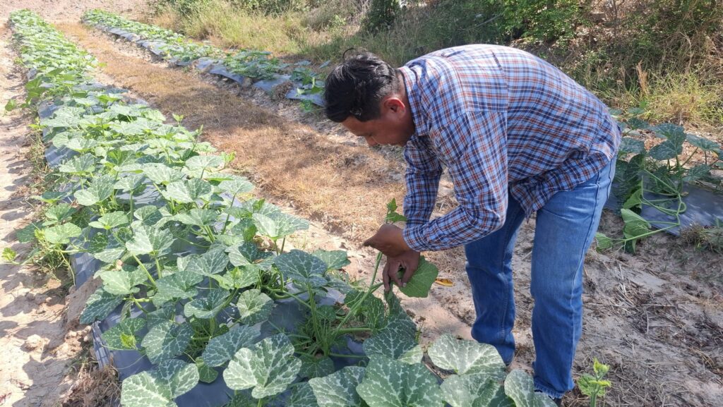 วันที่ 10 มีนาคม 2569 นางสาวอาภรณ์ แตงทอง นักวิชาการส่งเสริมการเกษตรชำนาญการ สำนักงานเกษตรอำเภอหนองหญ้าไซ พร้อมด้วยผู้นำหมู่บ้าน และ อกม. หมู่ที่ 6 ตำบลหนองราชวัตร นางสาวทุเรียน อู่อรุณ ให้บริการการเกษตรเคลื่อนที่ โดยให้บริการขึ้นทะเบียนและปรับปรุงทะเบียนเกษตรกร ประชาสัมพันธ์สร้างการรับรู้เรื่องงดการเผาในพื้นที่เกษตรกรรม ส่งเสริมการดำเนินงานตามแนวทาง 3R Model ติดตามเยี่ยมเยียน นายสุชิน อู่อรุณ เกษตรกรที่เข้าร่วมโครงการส่งเสริมการเกษตรที่เป็นมิตรกับสิ่งแวดล้อม กิจกรรมแปลงเรียนรู้การบริหารจัดการพื้นที่การเกษตรที่เป็นมิตรกับสิ่งแวดล้อมปลูกพืชใช้น้ำน้อย ซึ่งเกษตรกรปลูกพืชใช้น้ำน้อยหลังนา ได้แก่ ฟักทอง แตงโม แตงไทย ปัจจุบันได้เก็บแตงโมอ่อนจำหน่าย กิโลกรัมละ 10 บาท ณ บ้านทัพมะเขือ หมู่ที่ 6 ตำบลหนองราชวัตร อำเภอหนองหญ้าไซ จังหวัดสุพรรณบุรี